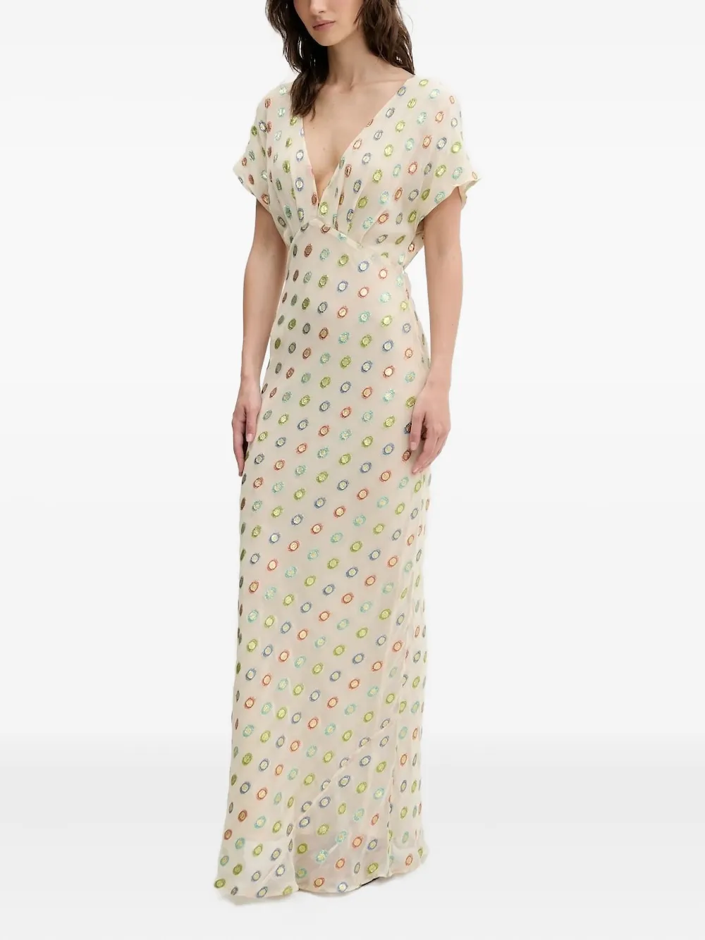 Платье макси с V-образным вырезом и декором NEVER FULLY DRESSED, нейтральный