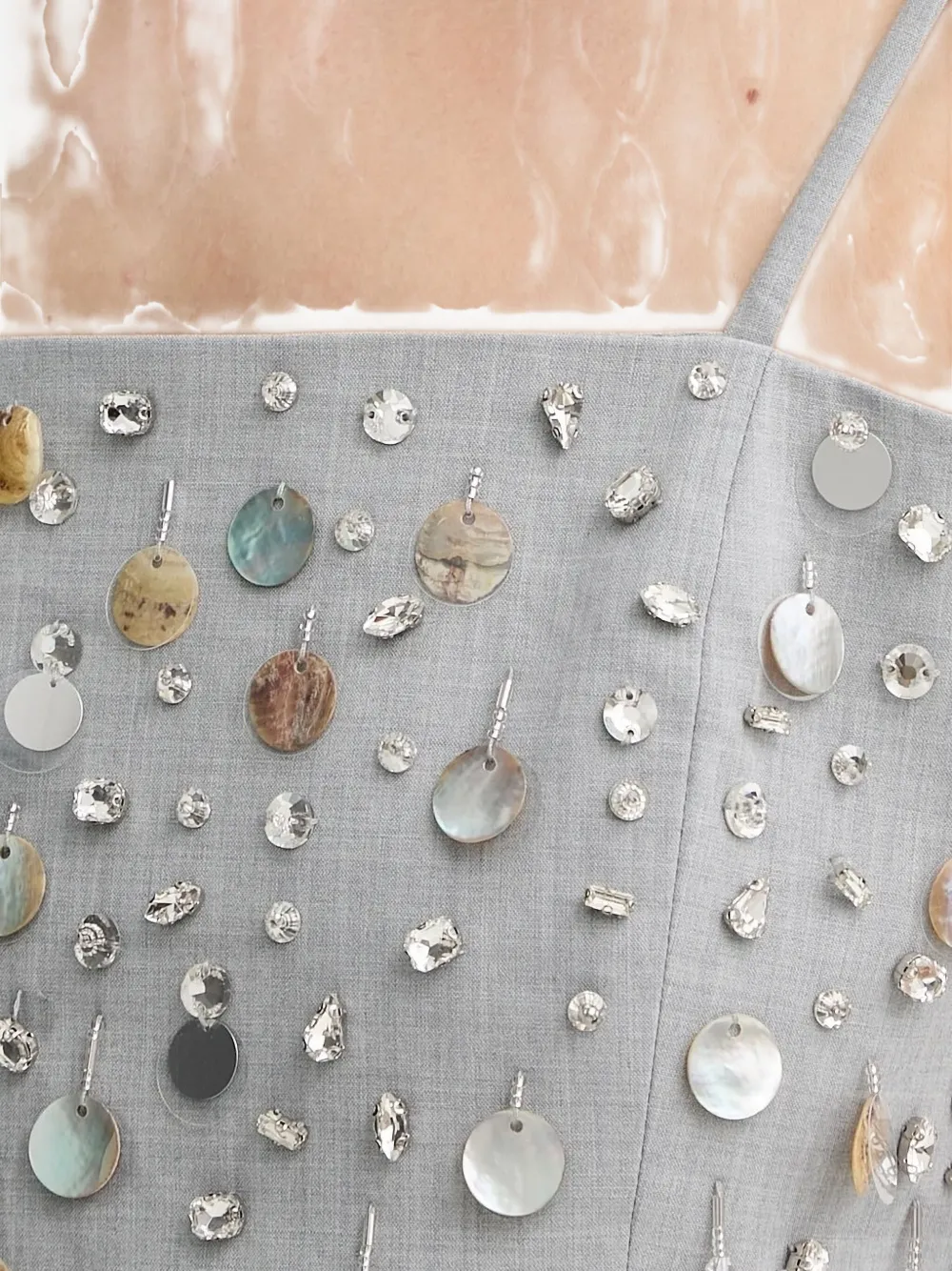 Украшения из серых кристаллов, квадратный вырез, тонкие бретельки