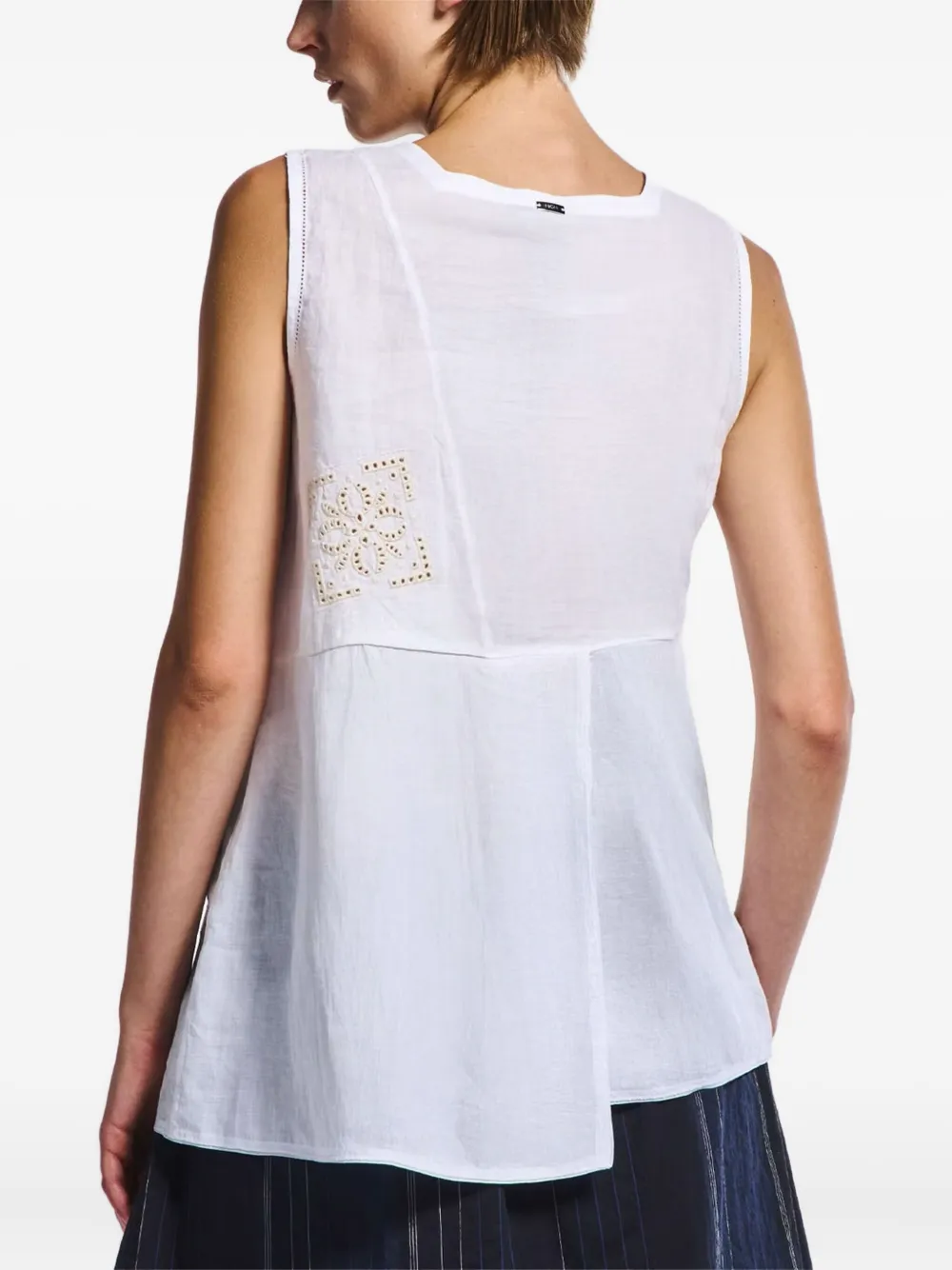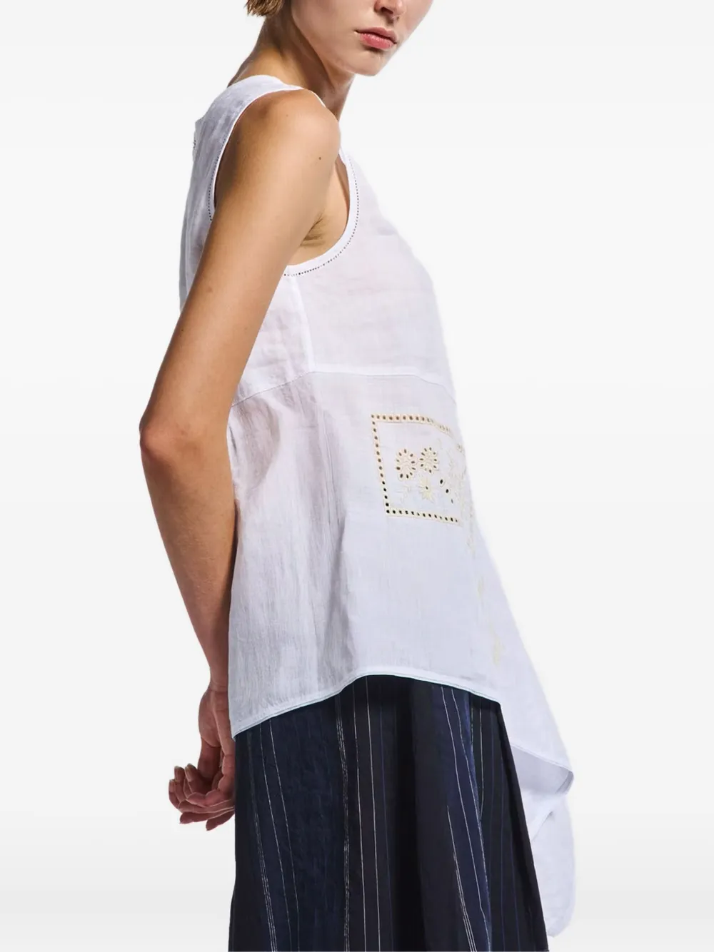 Белый безрукавный фасон, асимметричный подол, цветочная вышивка