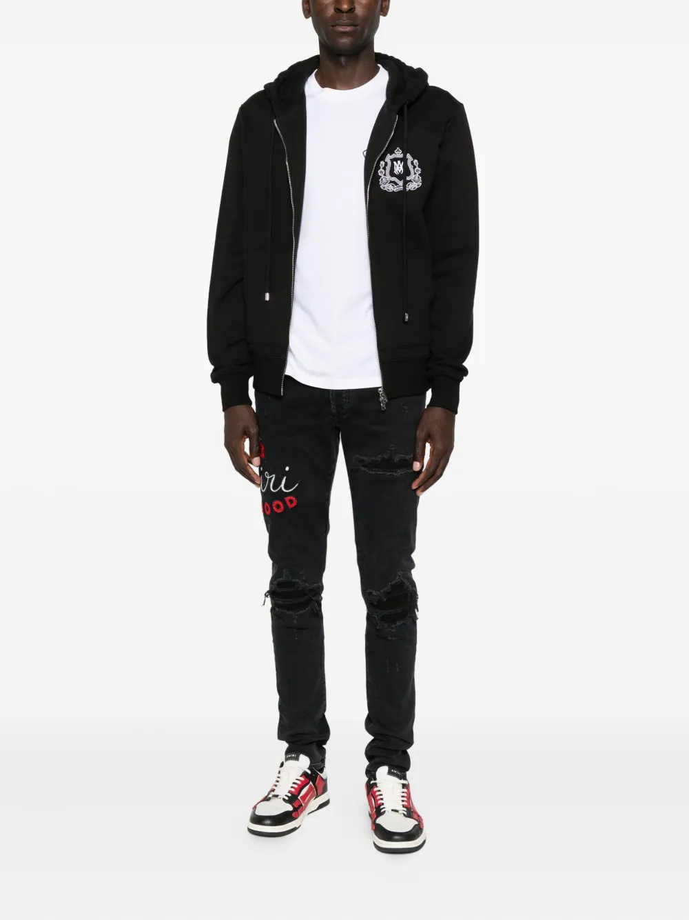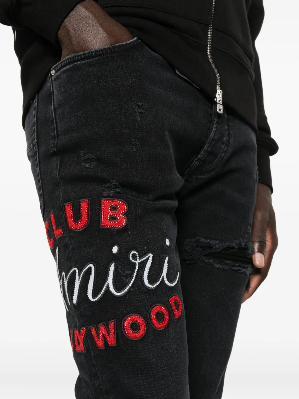 Вышитые потертые джинсы AMIRI, черный