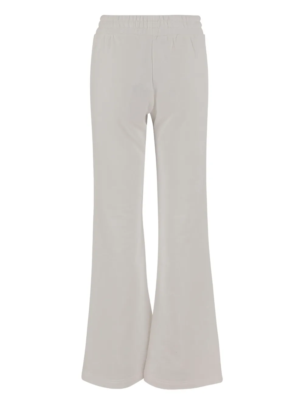 Расклешенные брюки из хлопка с кремовым оттенком, эластичный пояс, вышитый логотип, прямые швы