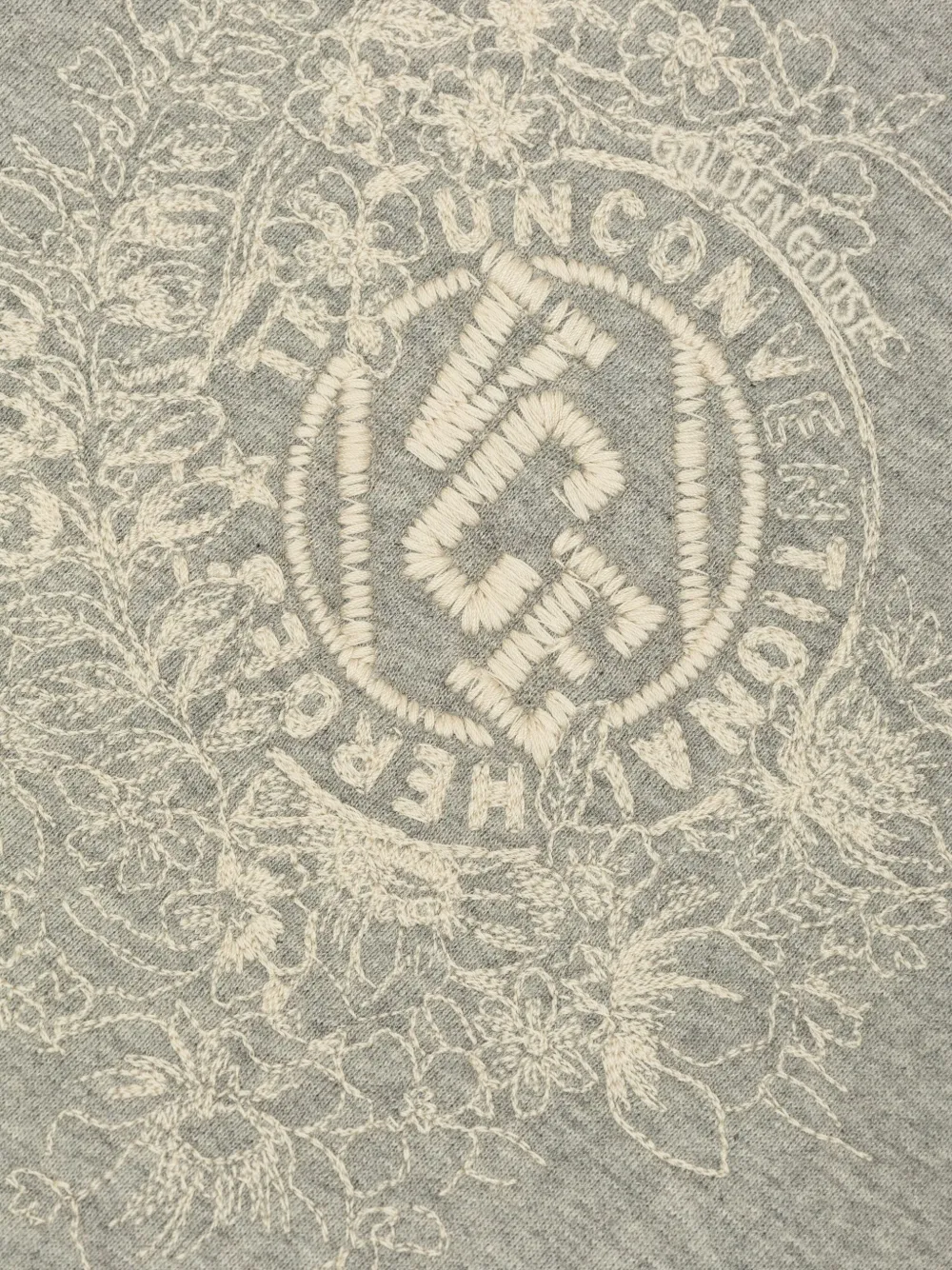 Юбка с круглым вырезом, длинными рукавами, отделкой люверсами и серой цветочной вышивкой