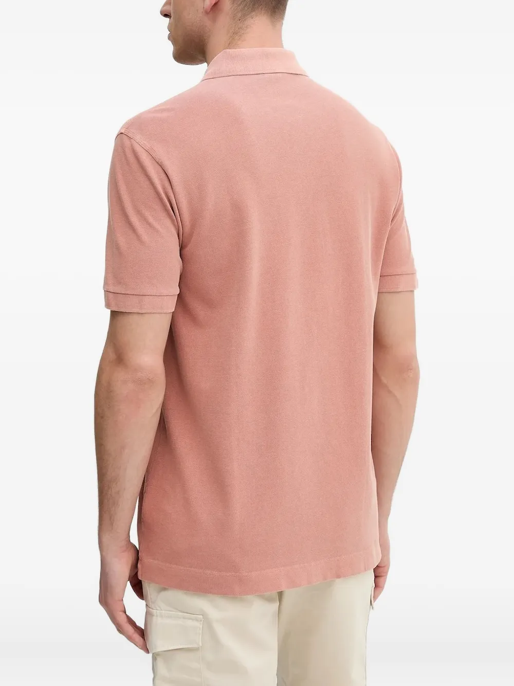 Оранжевый хлопковый короткий рукав, планка на пуговицах, вышитый логотип