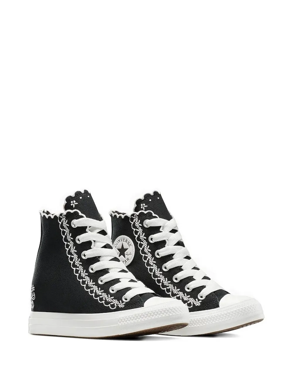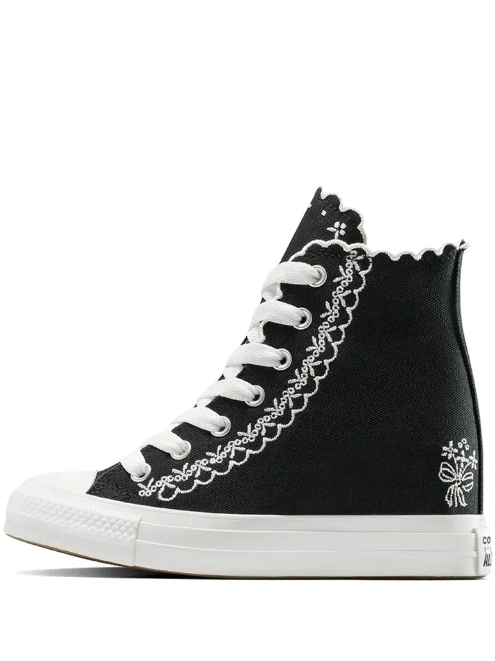 Черный фестончатый край, вышитые детали, шнуровка, высокий дизайн, белая подошва