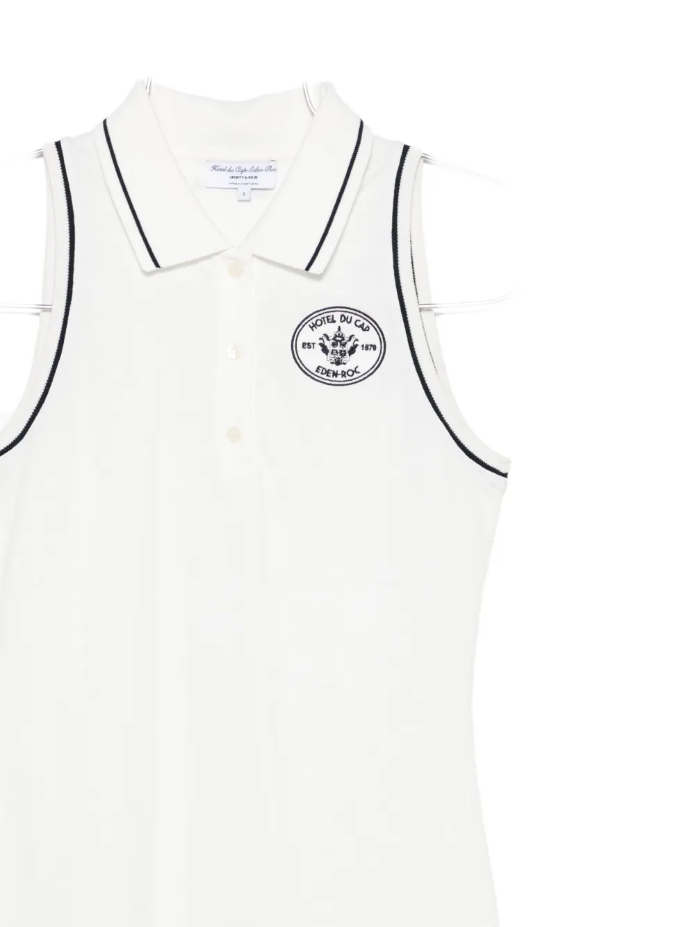 Воротник-поло с отделкой белого и темно-синего цветов, без рукавов, застежка на пуговицы с вышитым логотипом
