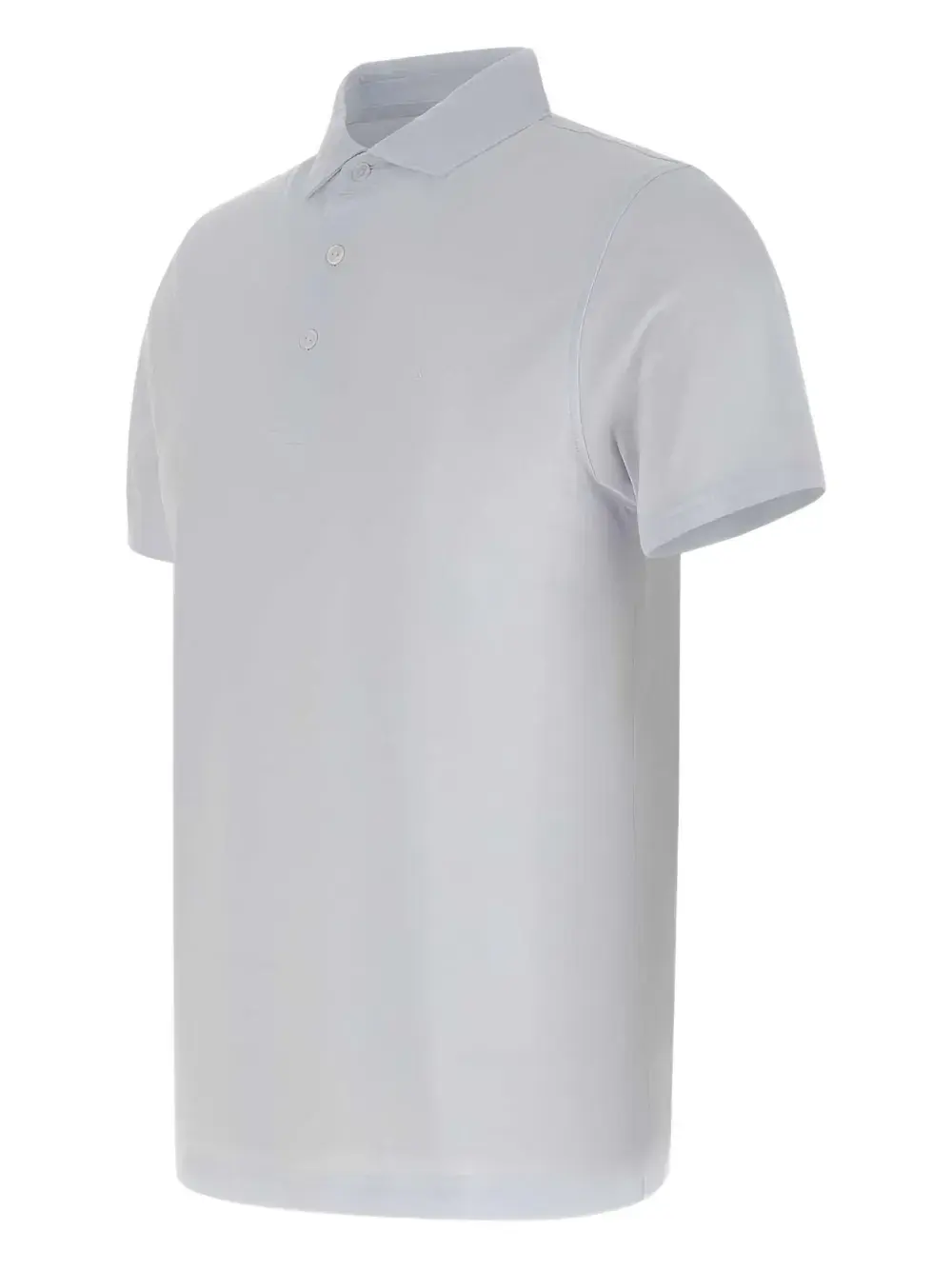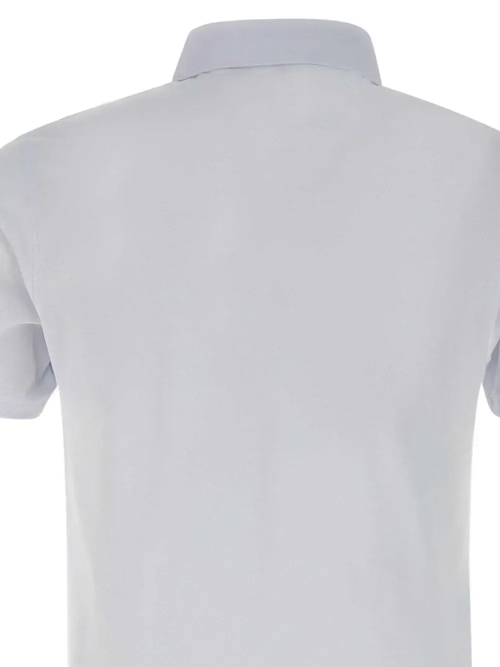 Белая планка с пуговицами, короткие рукава, вышитый логотип.