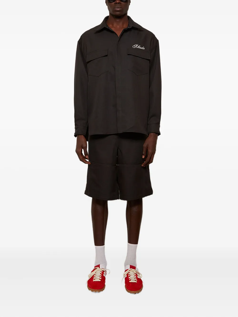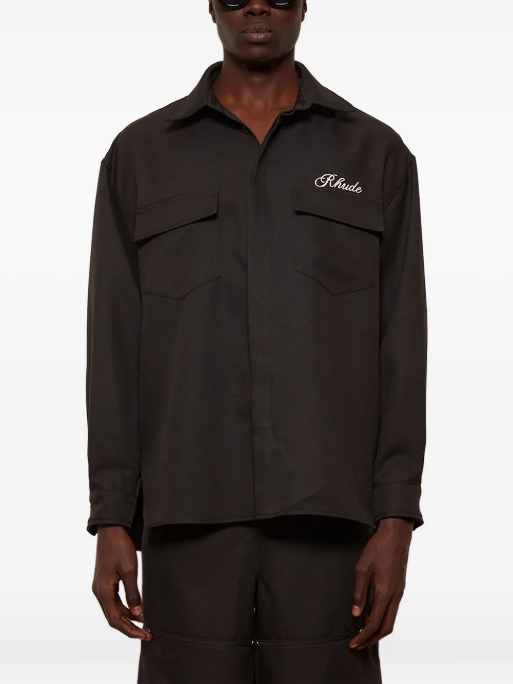 Рубашка с вышитым логотипом RHUDE, черный
