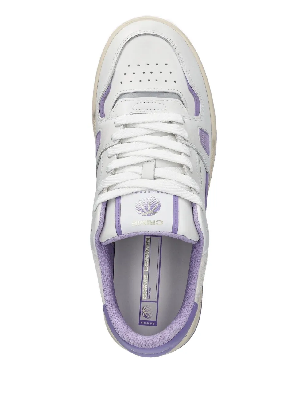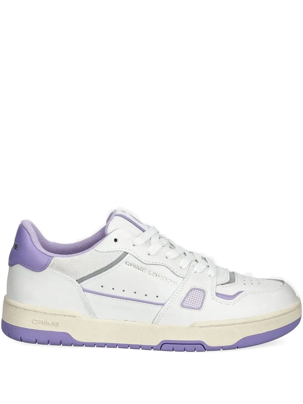 Белая кожа, фиолетовые панели, шнуровка, резиновая подошва