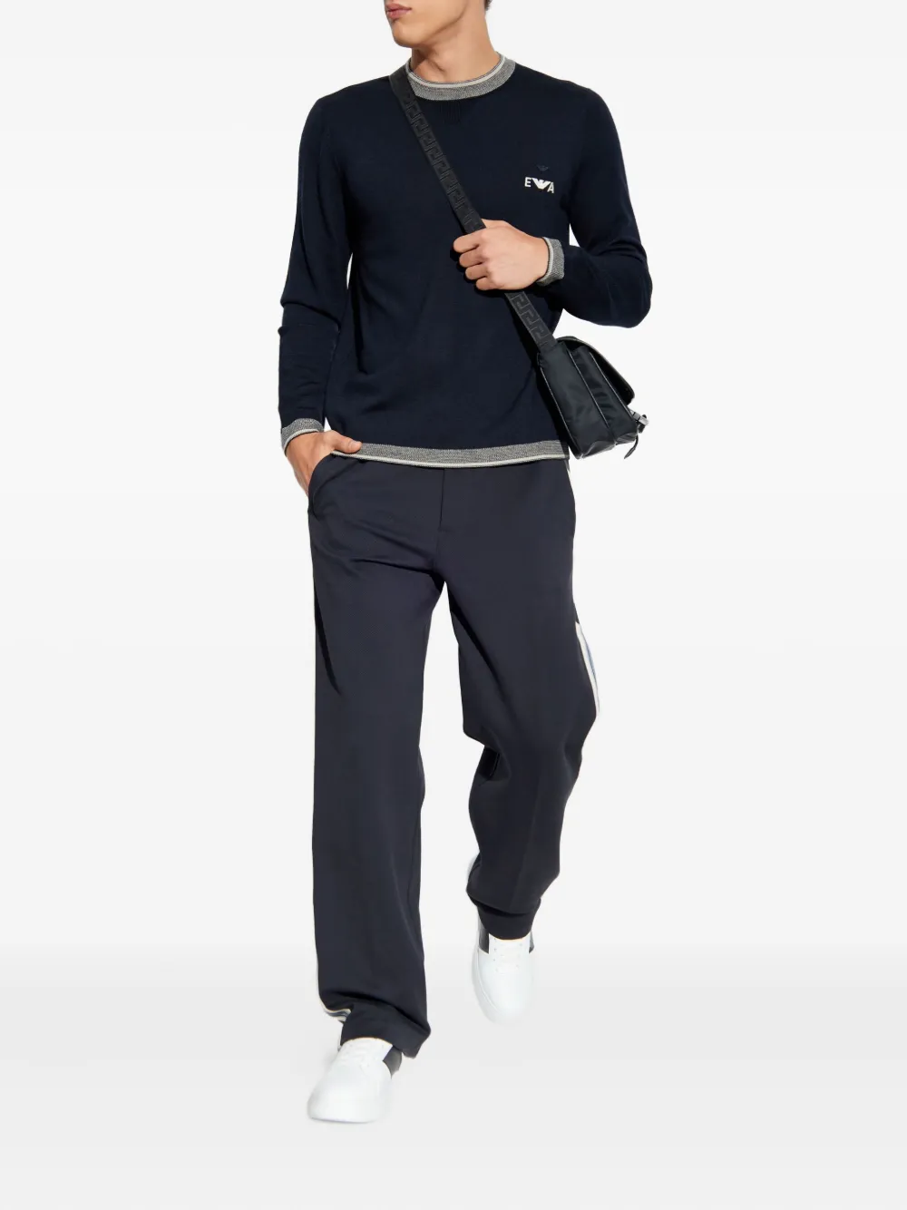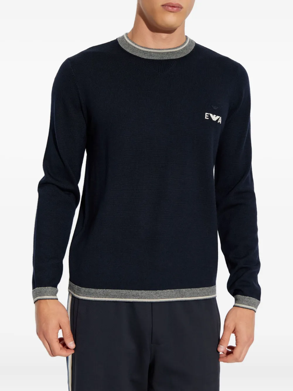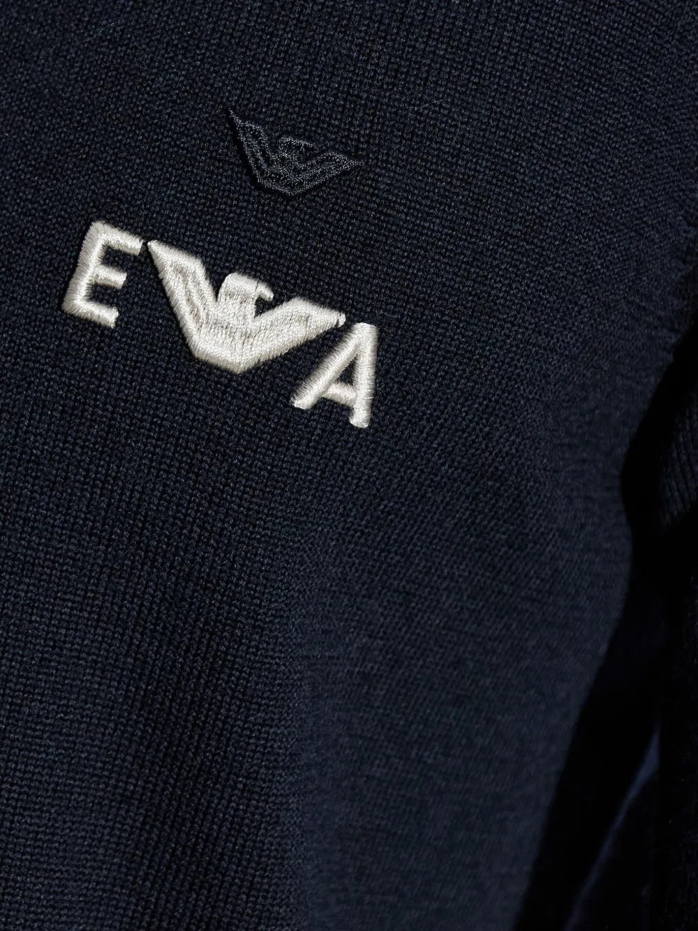 Шерстяной свитер с вышитым логотипом EMPORIO ARMANI, синий