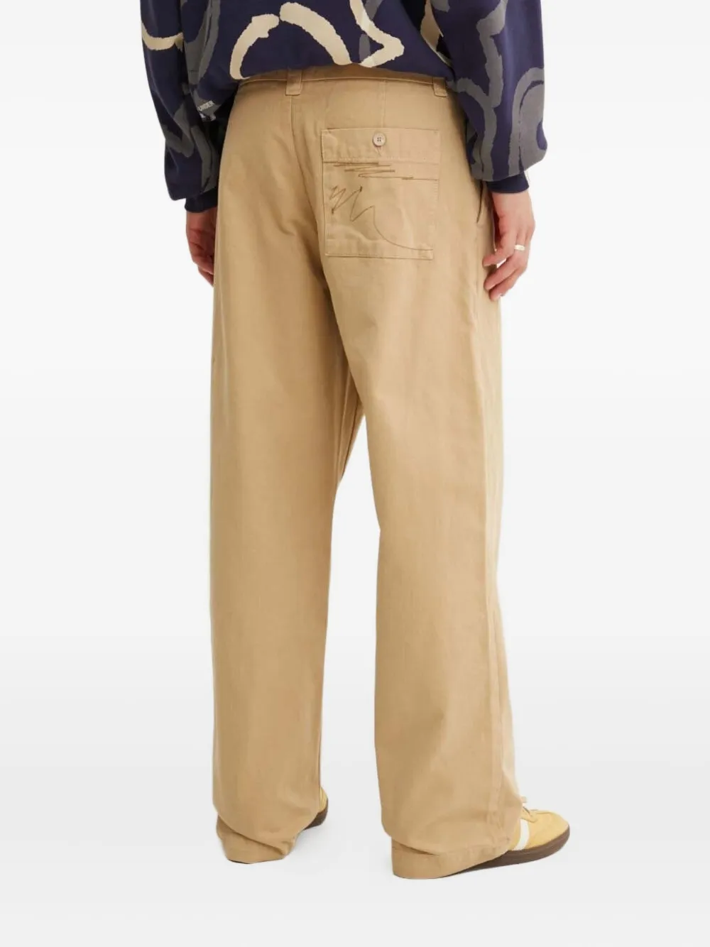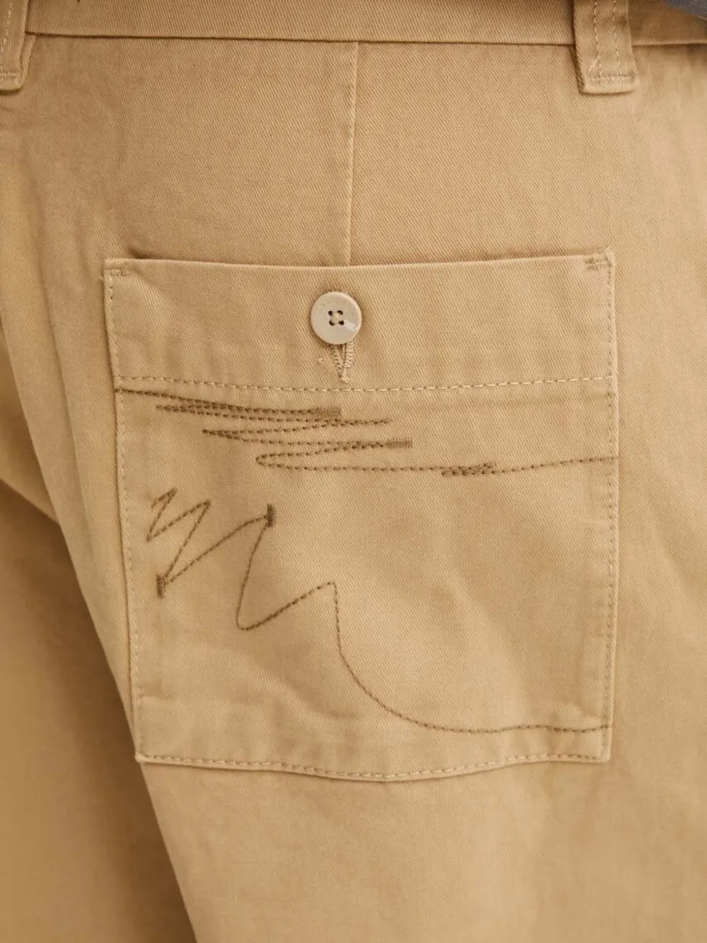 Бежевые вышитые карманы с застежкой на пуговицу, прямые прорезные карманы на штанинах