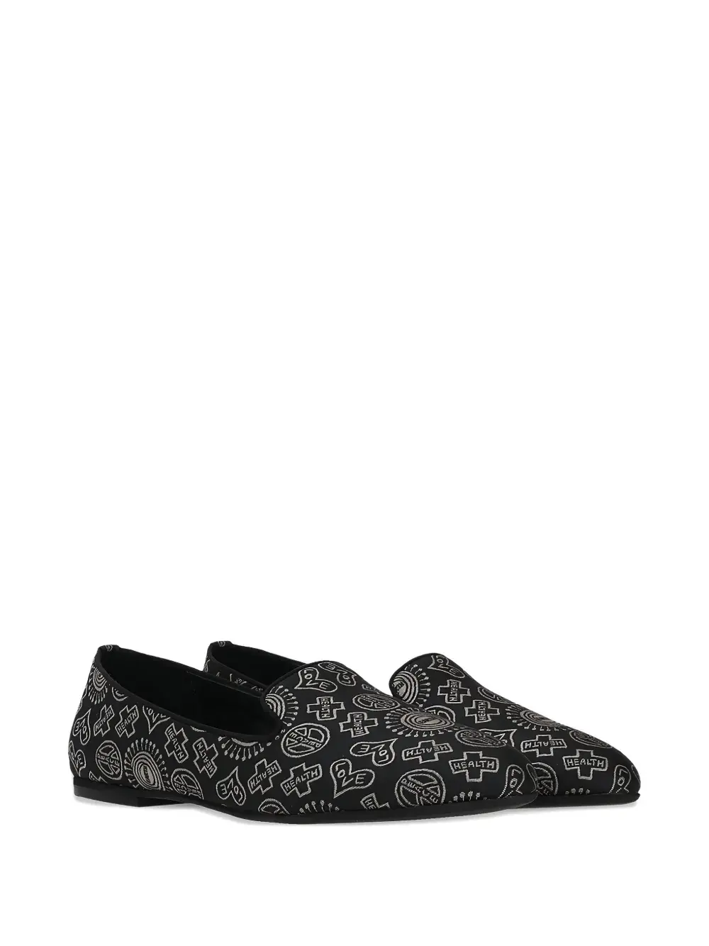 Туфли с вышитым черным символом, заостренный носок, плоская подошва
