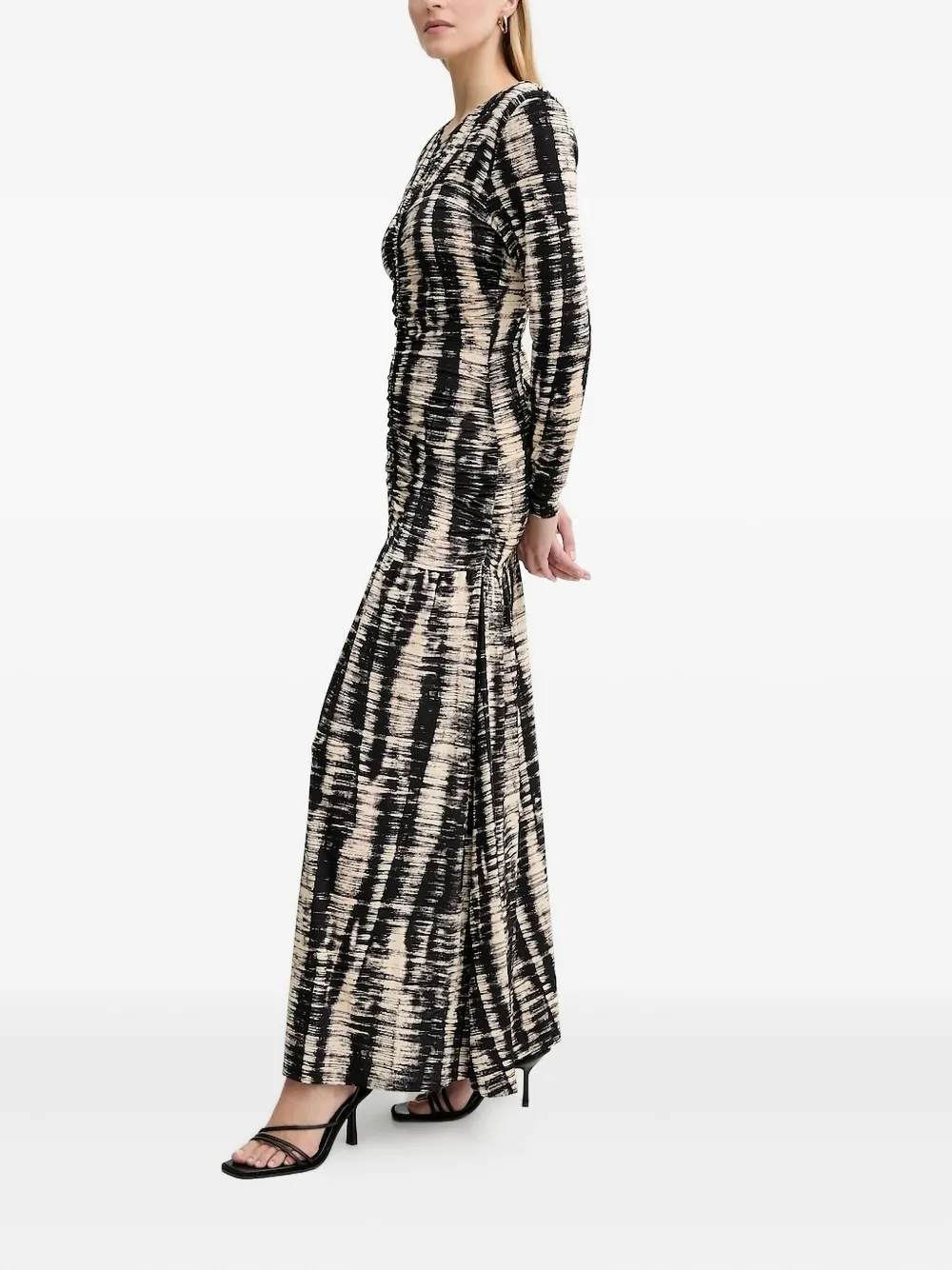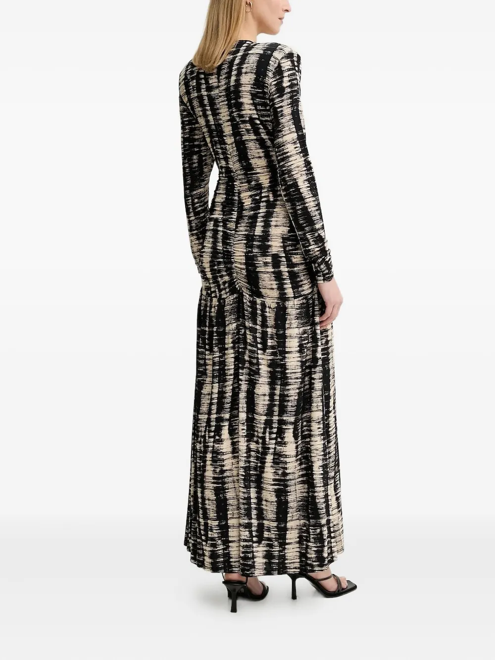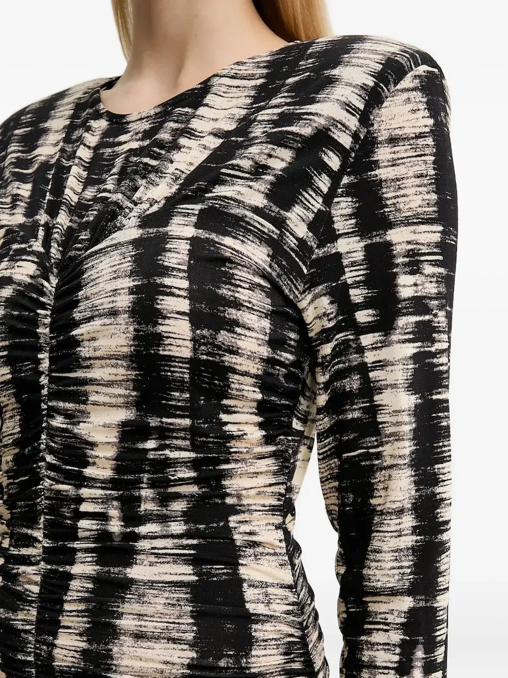 Черный абстрактный принт, длинные рукава, присборенный лиф