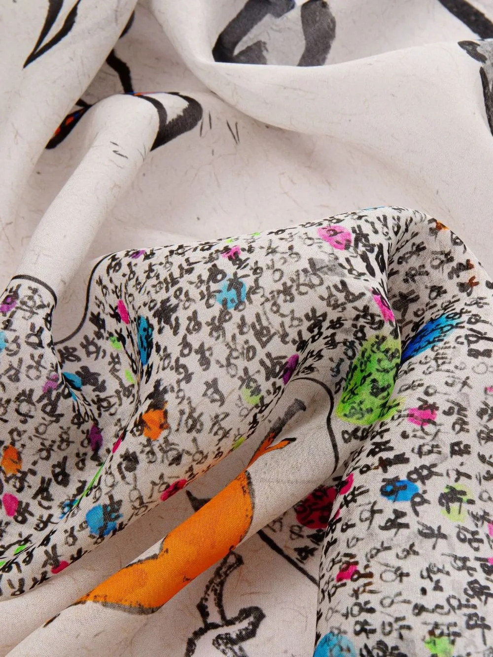 Шелковый шарф с конным принтом Shanghai Tang, белый