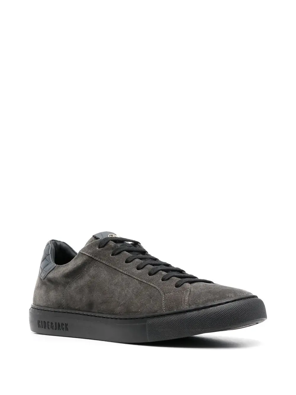 Темно-серый, замша из телячьей кожи, нашивка с логотипом на язычке, закругленный носок, шнуровка спереди, стелька с логотипом и массивная резиновая подошва.