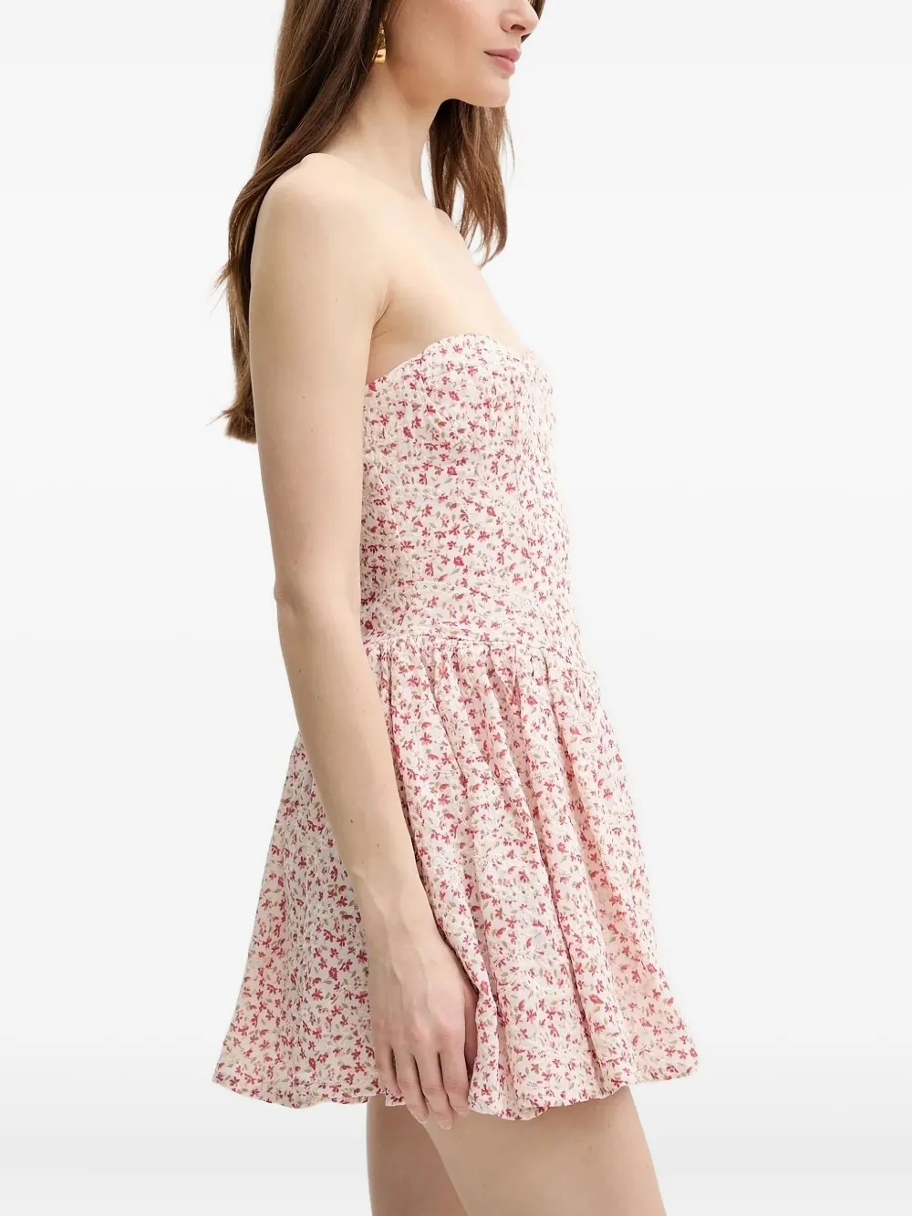 Бело-розовый цветочный принт, облегающий лиф без бретелек, расклешенная юбка со шнуровкой сзади