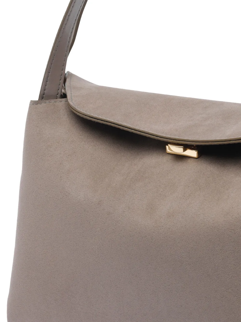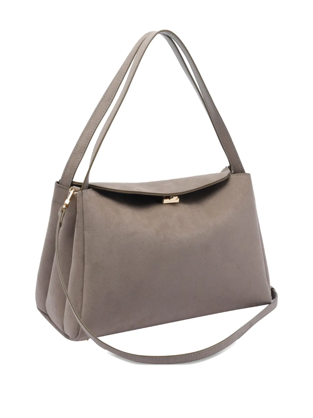 Магнитная застежка, два плечевых ремня, серая замшевая текстура