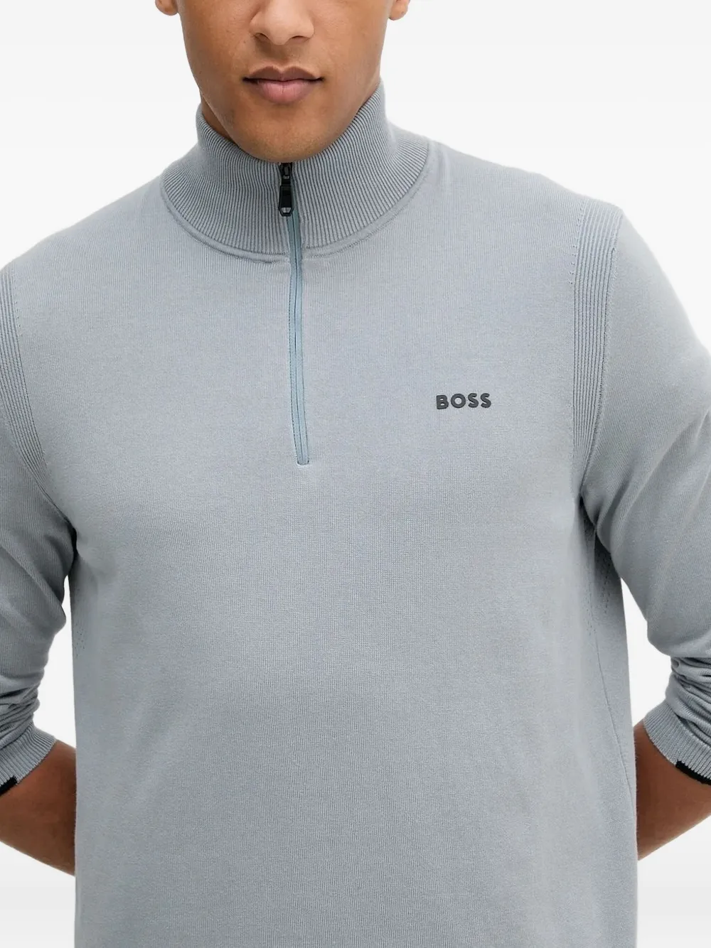 Свитер Ever на молнии с высоким воротником BOSS, серый