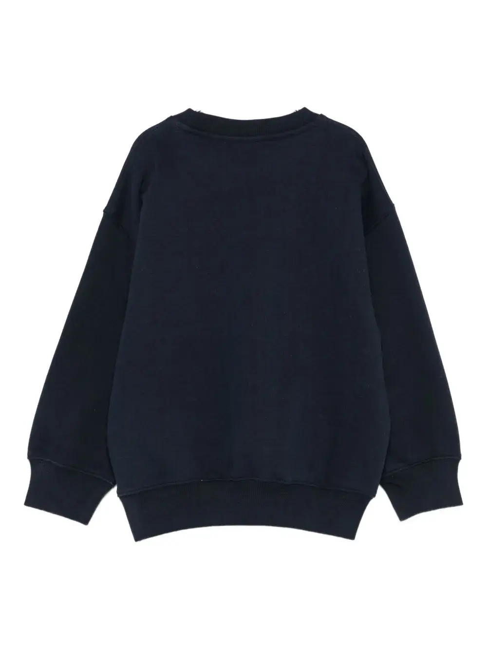 Круглый вырез горловины, длинные рукава, принт с изображением лица, ребристый подол, ребристые манжеты.