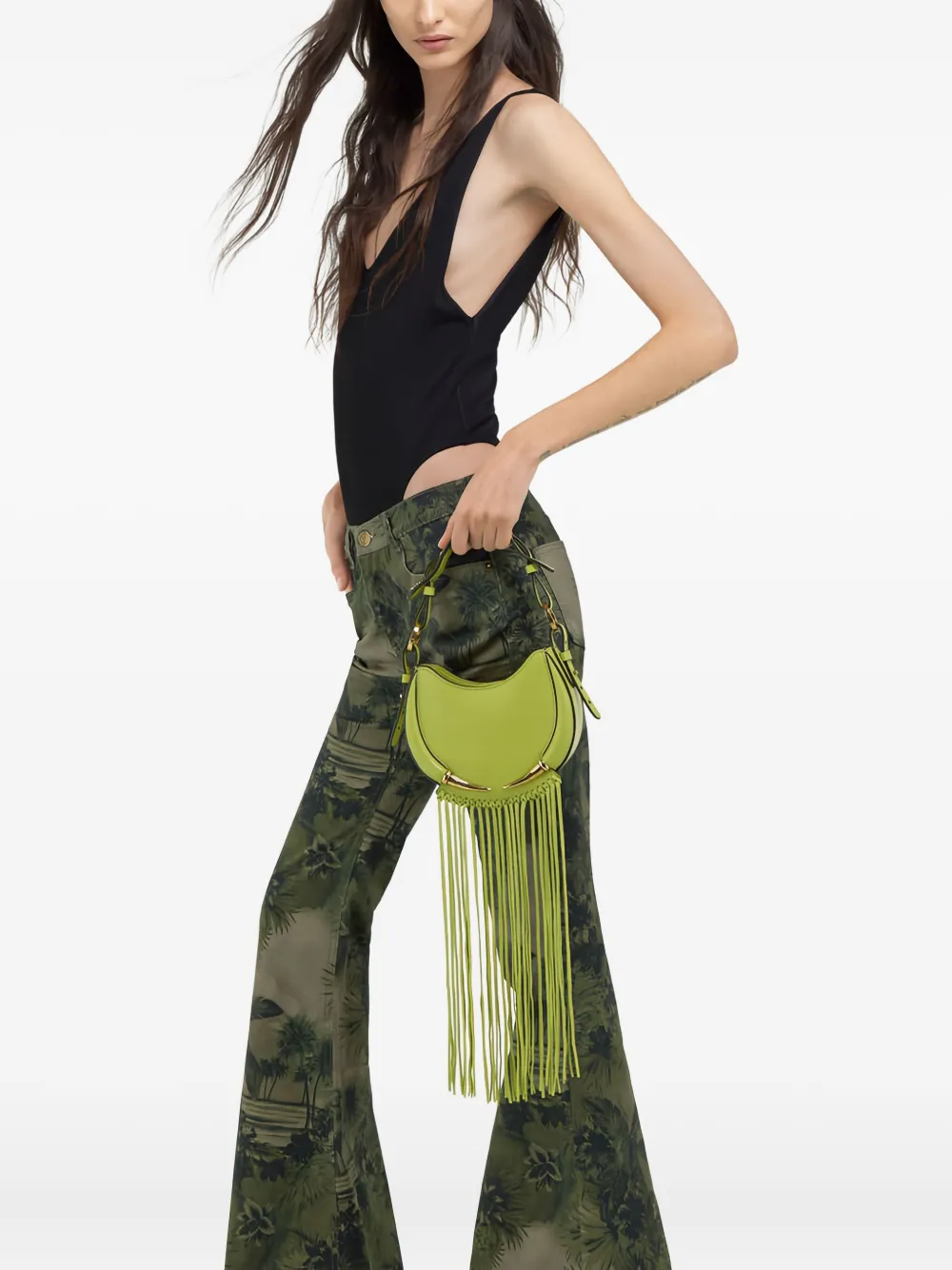 Сумка через плечо с бахромой в виде клыков Roberto Cavalli, зеленый 83 925₽