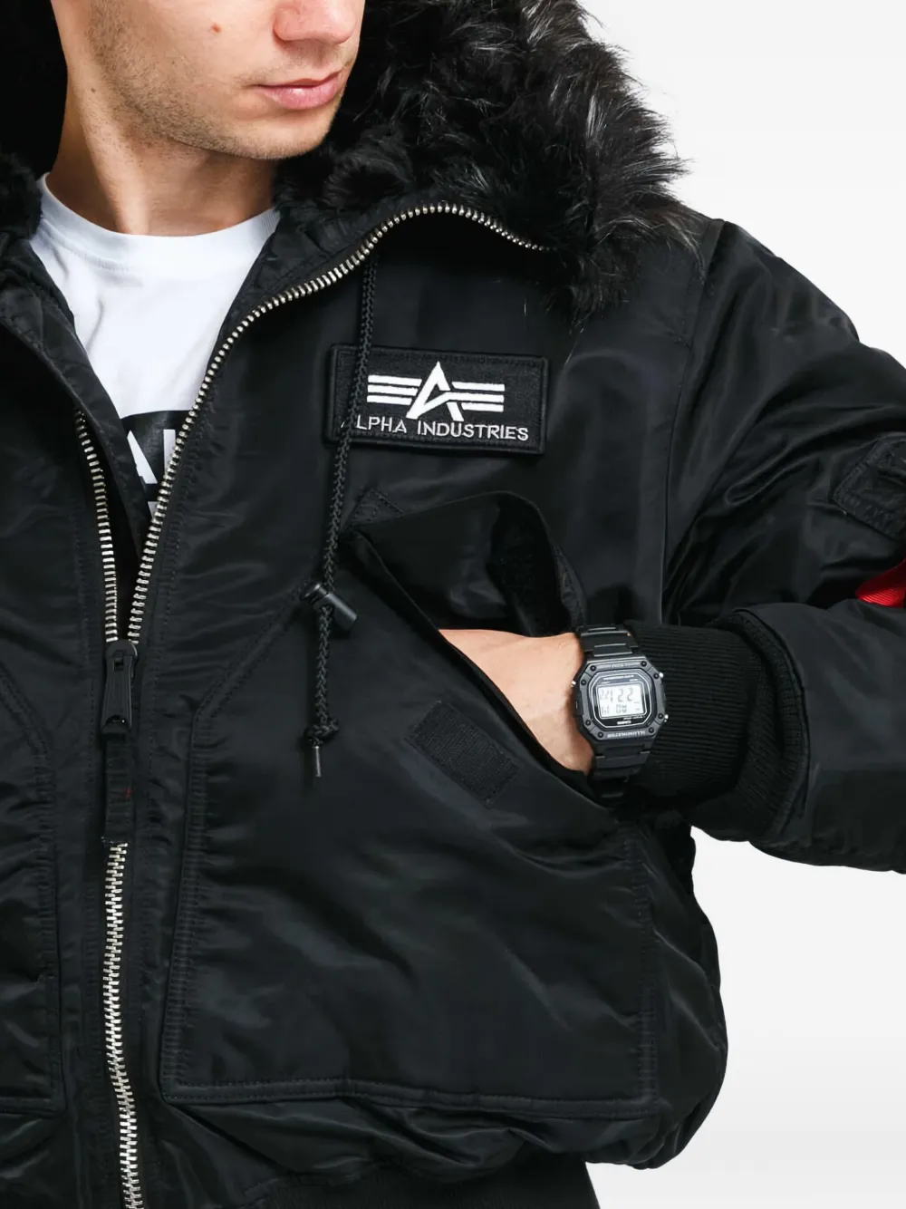 Куртка с капюшоном из искусственного меха Alpha Industries, черный 35 266₽