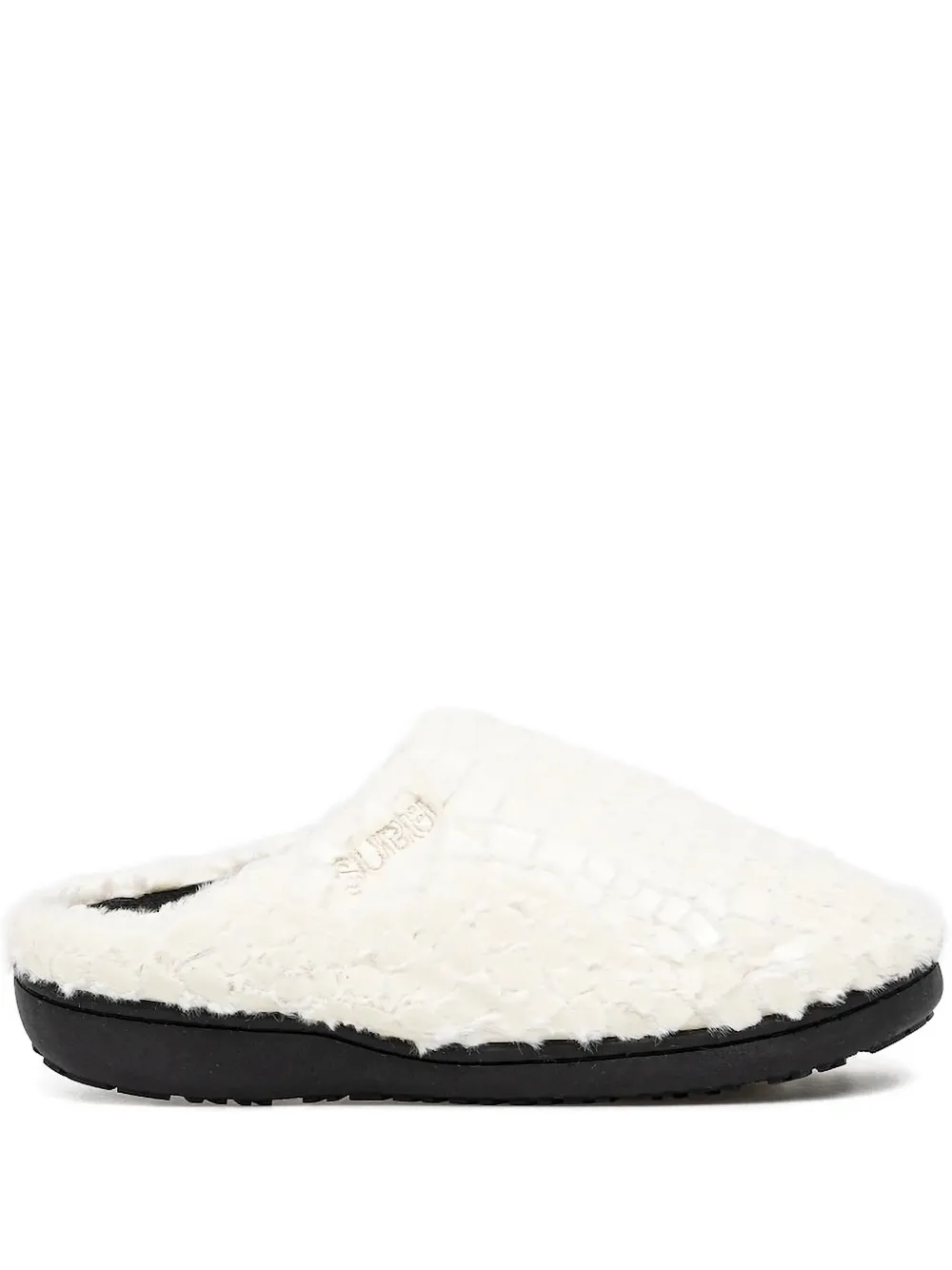 Туфли-лодочки из искусственного меха белого цвета, резиновая подошва, плоский каблук.
