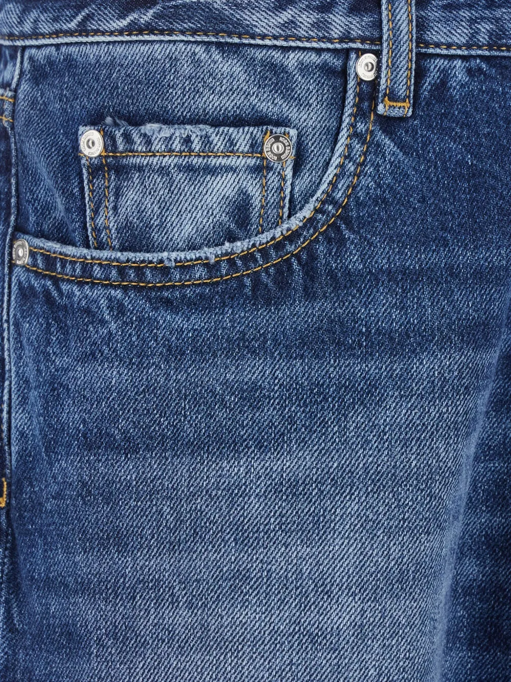 Синяя выцветшая модель с пятью карманами и застежкой на пуговицы