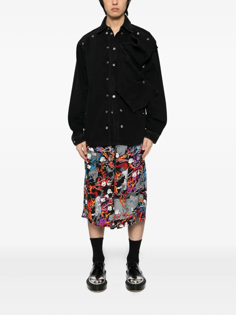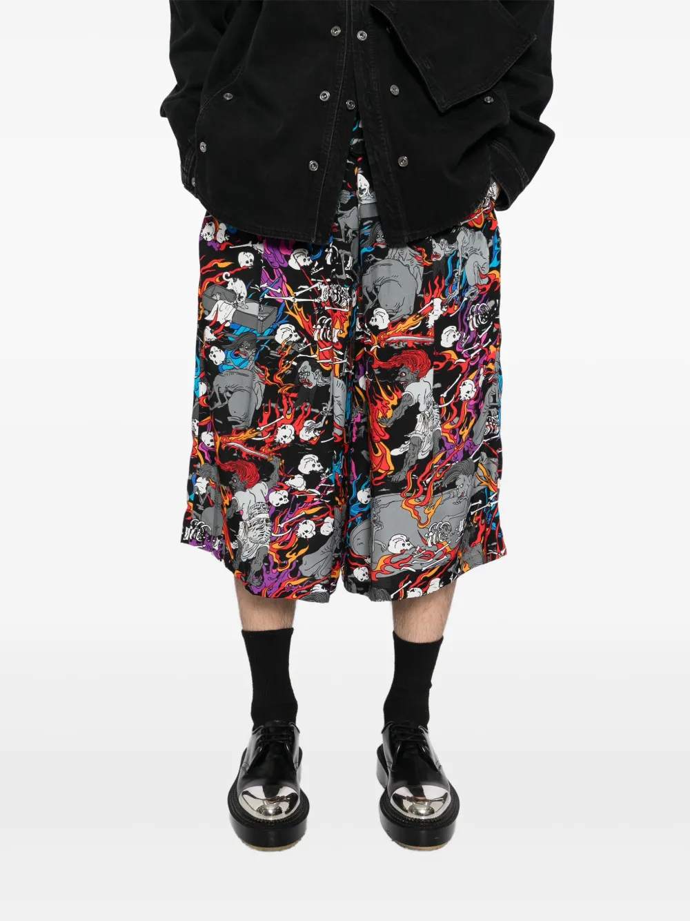 Шорты с принтом «Огненный череп» Kidill, черный
