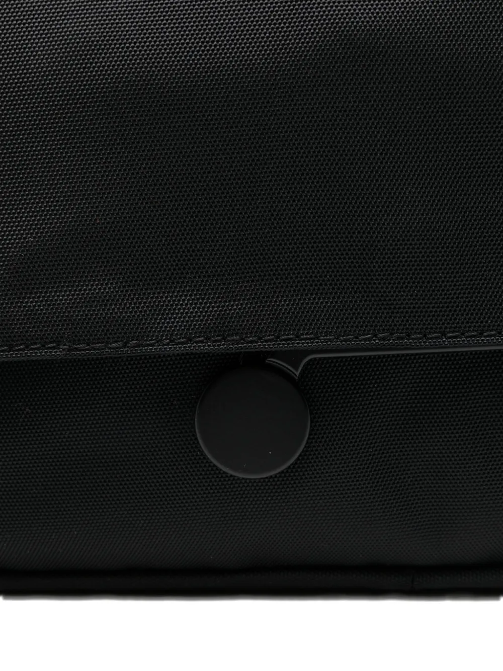 Черный плечевой ремень с застежкой-клапаном, две круглые детали прямоугольной формы