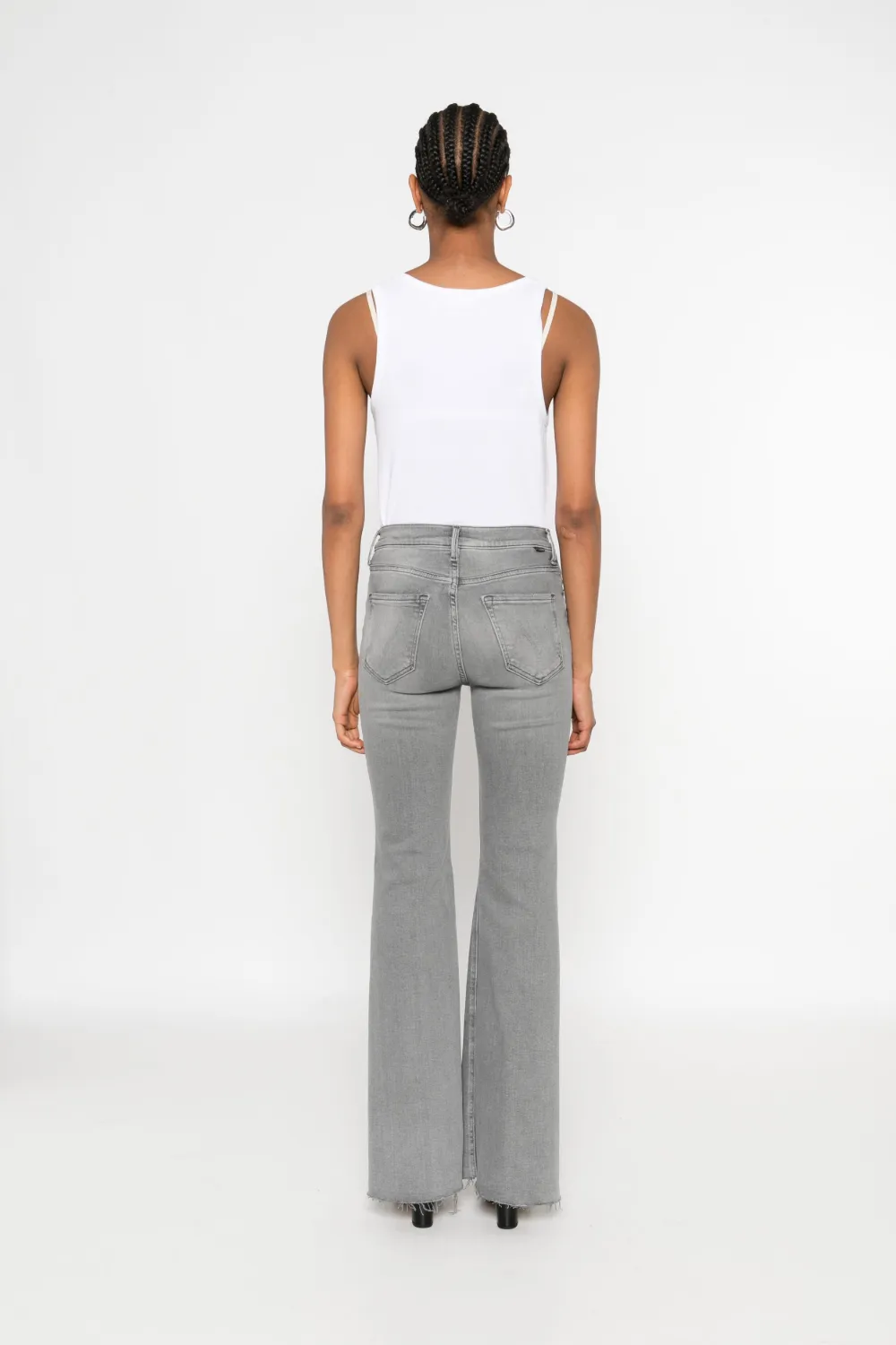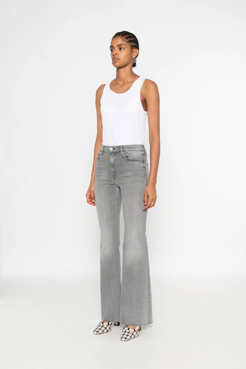 Расклешенные джинсы с бахромой MOTHER, серый 29 013₽