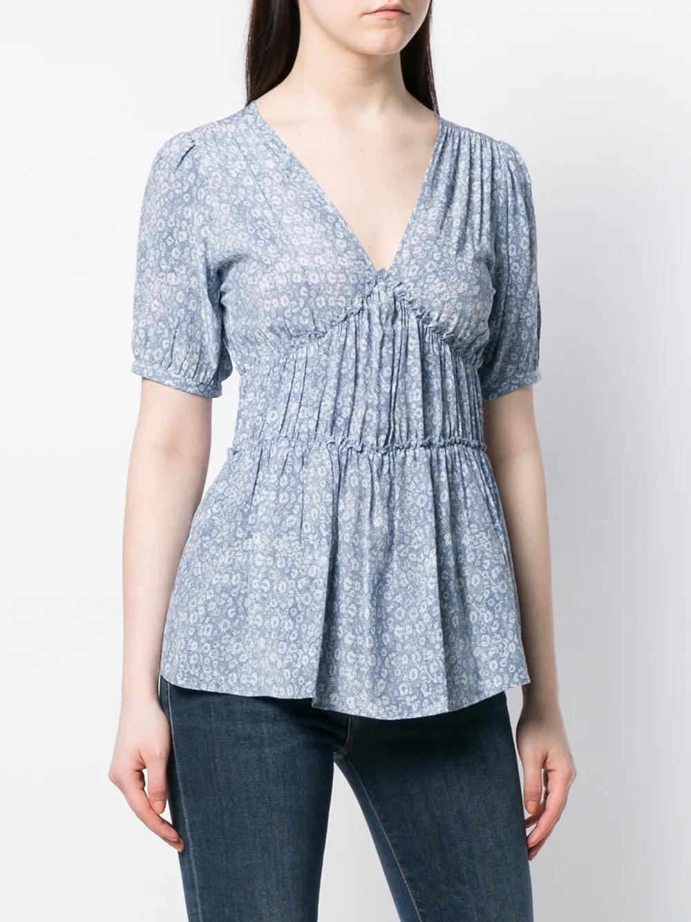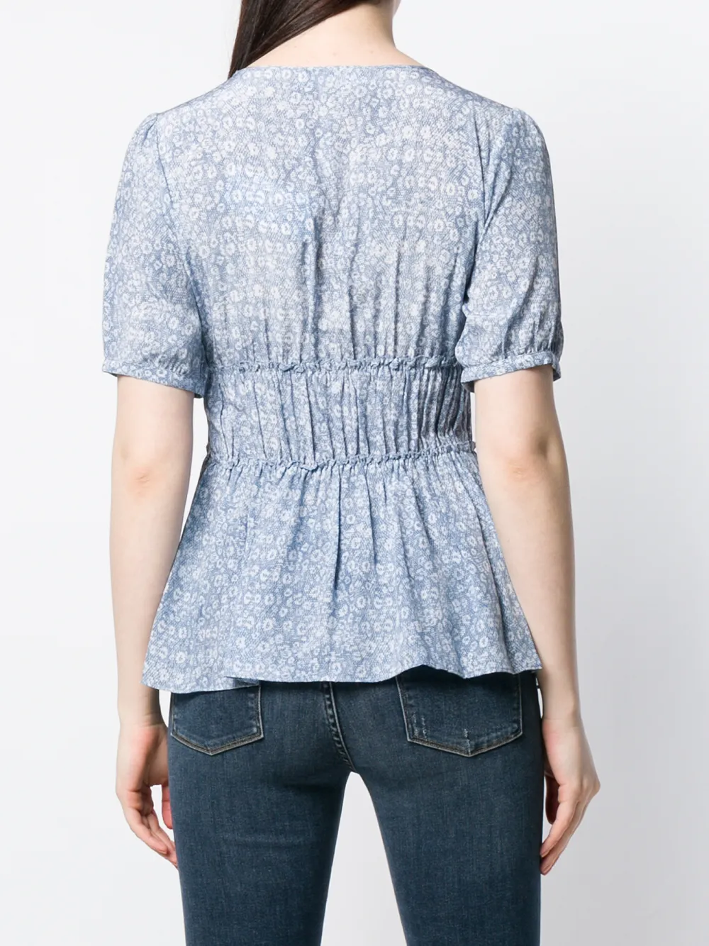 Блузка с цветочным принтом от Michael Kors Collection. Короткие рукава, приталенный крой, V-образная горловина и расклешенный силуэт.