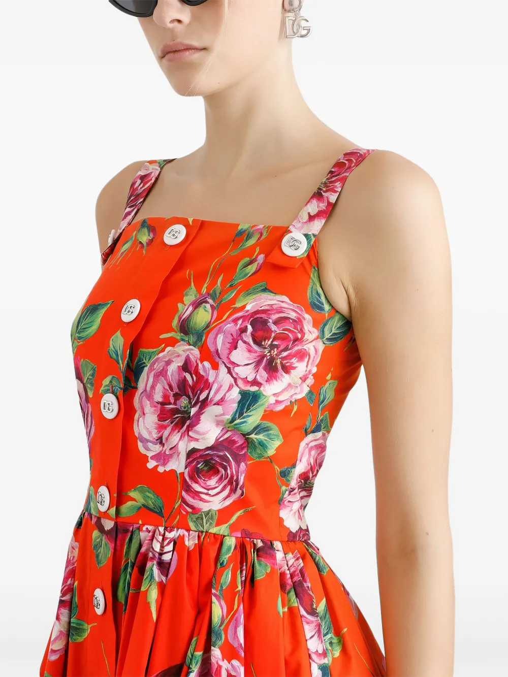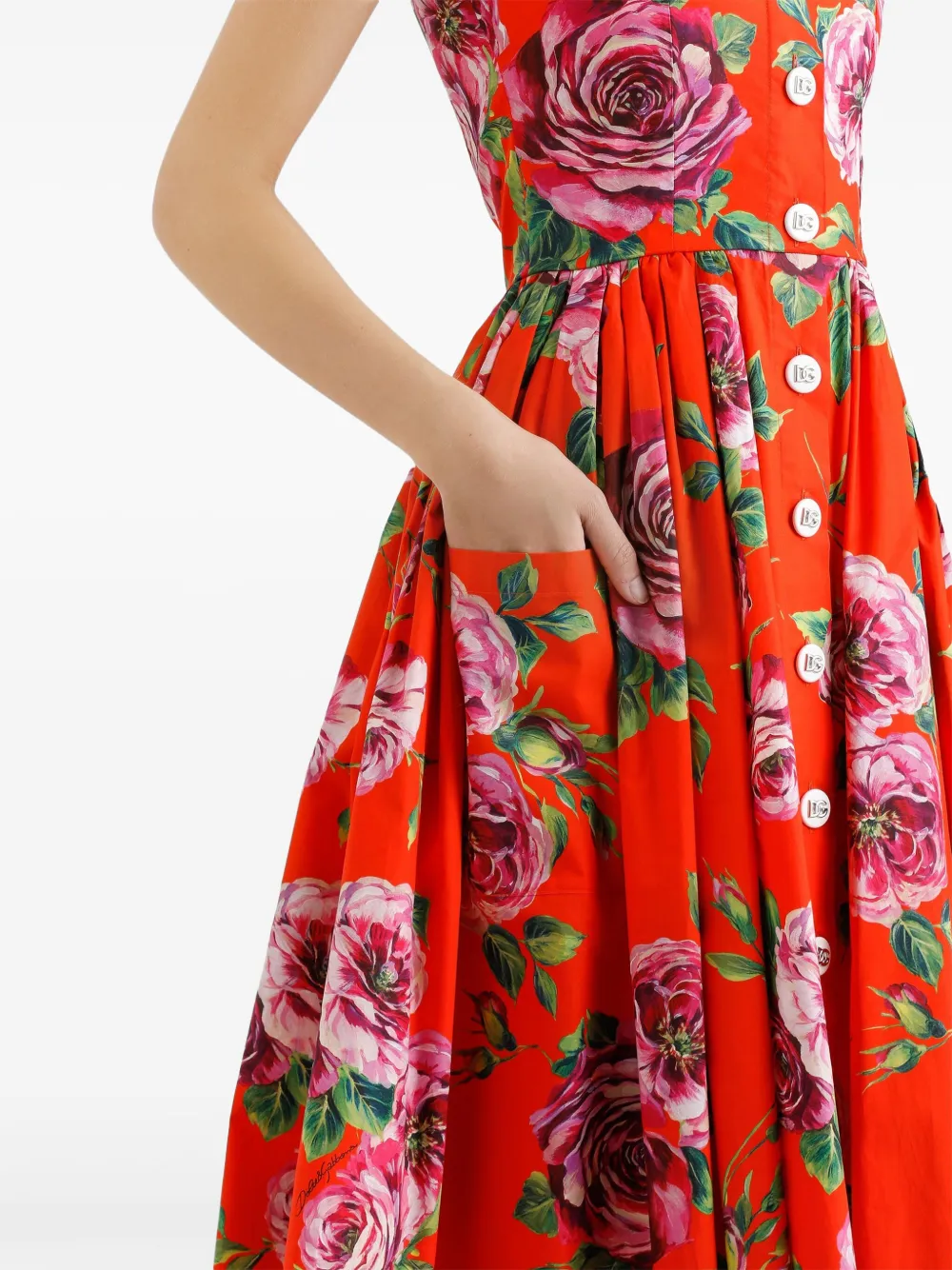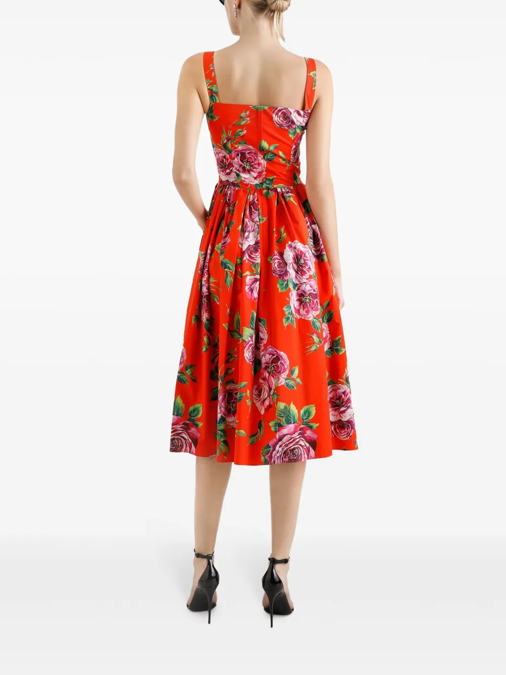Платье миди с цветочным принтом DOLCE & GABBANA, красный