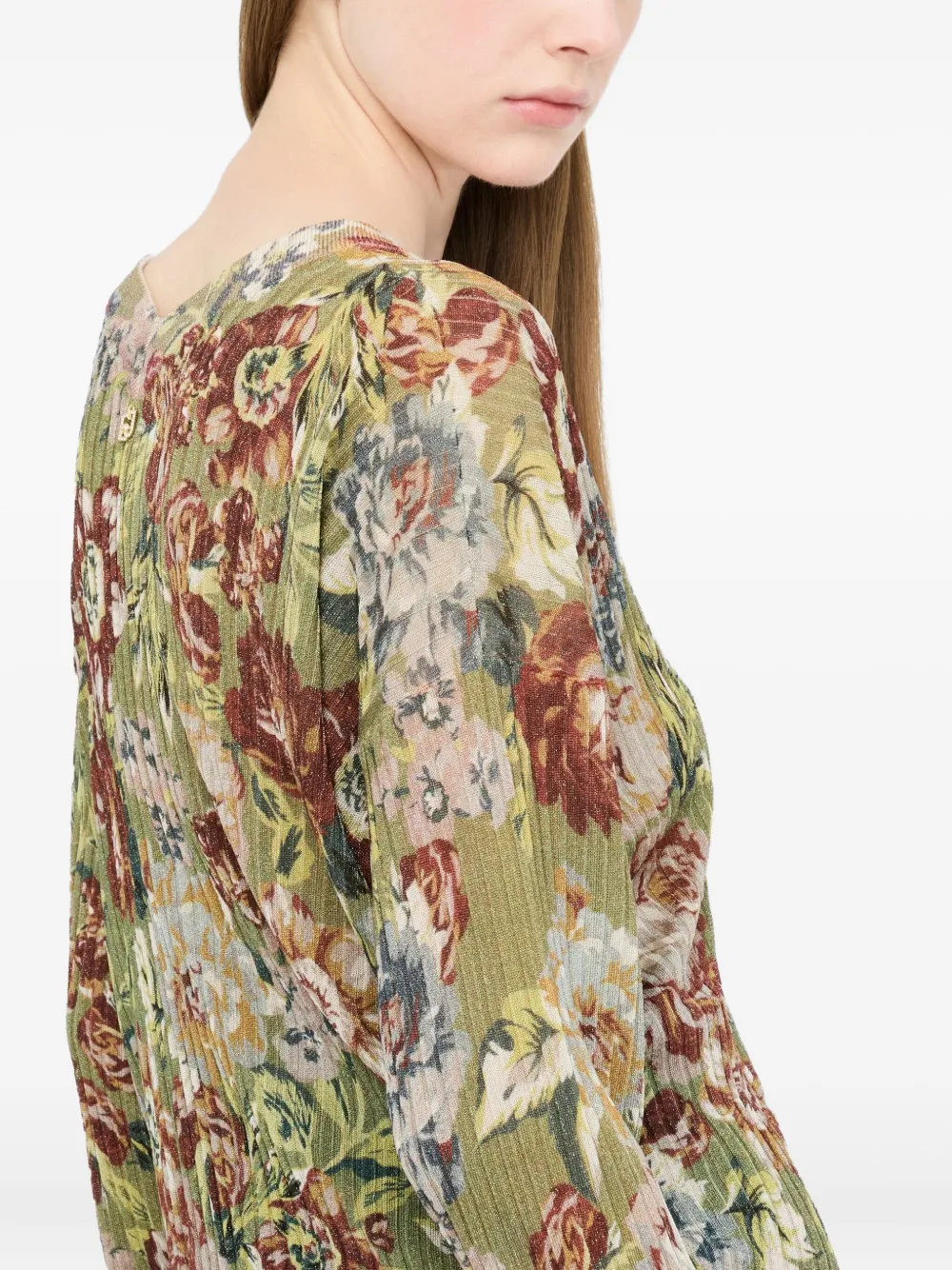 Ребристый свитер с цветочным принтом LIU JO, зеленый