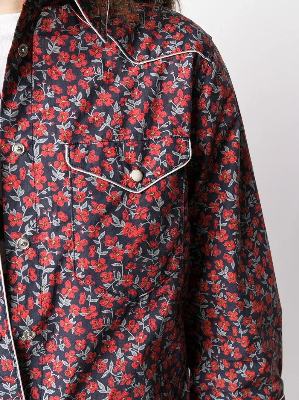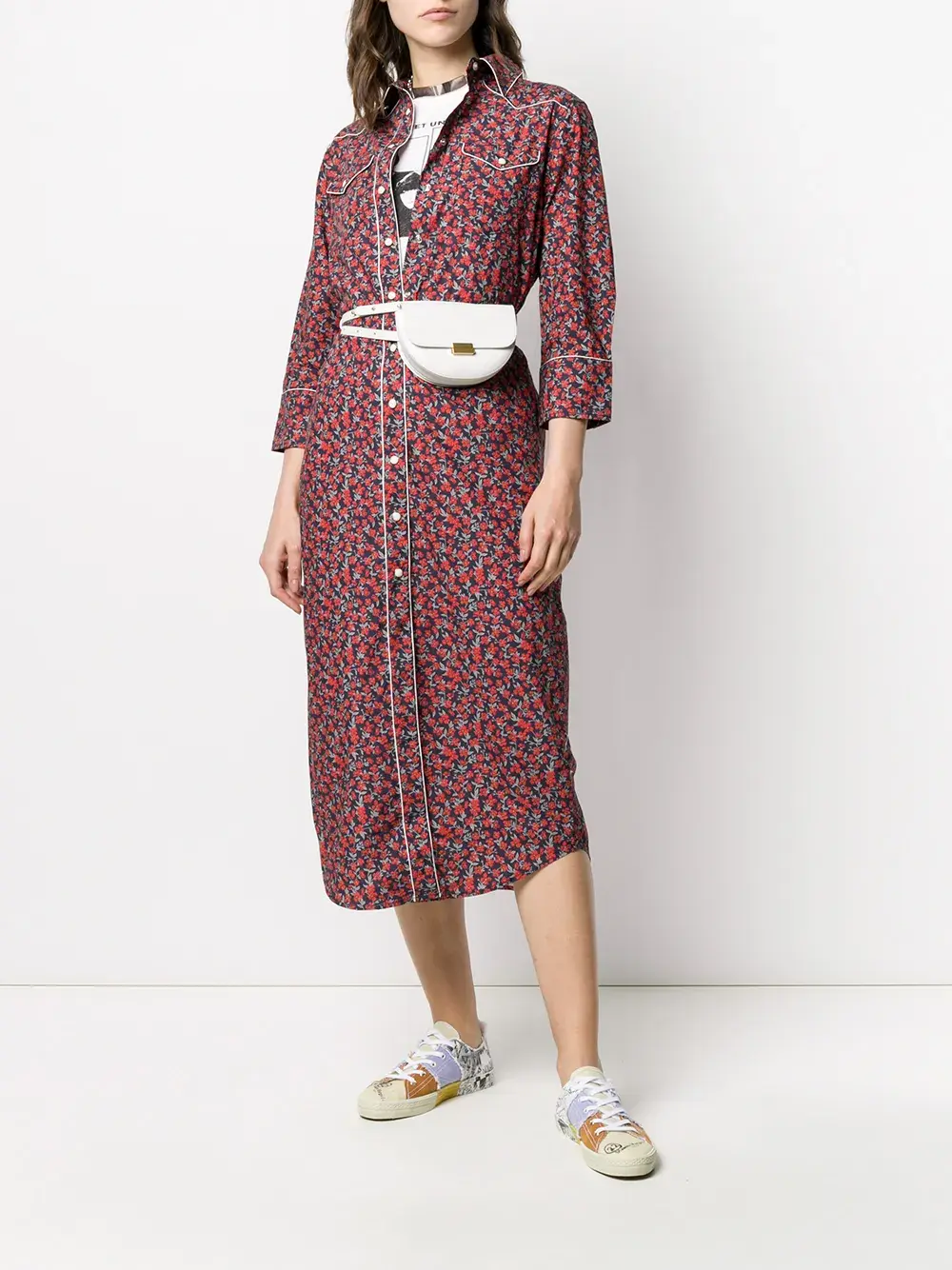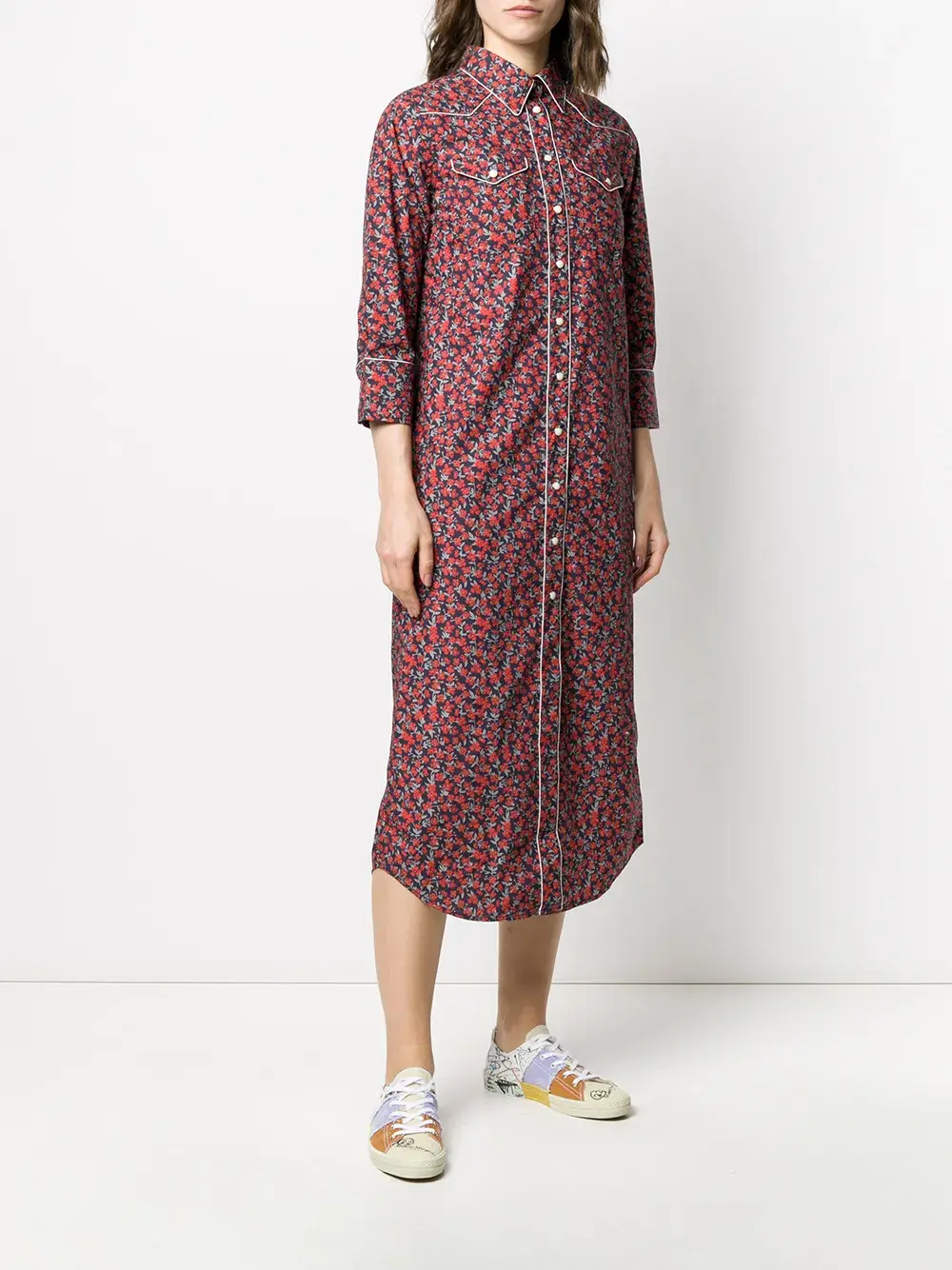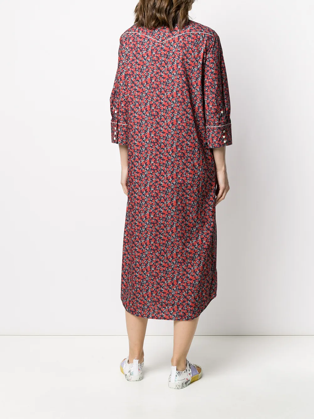 Платье-рубашка с цветочным узором от R13. Длинные рукава, классический воротник и цветочный принт. Цвет: красный.