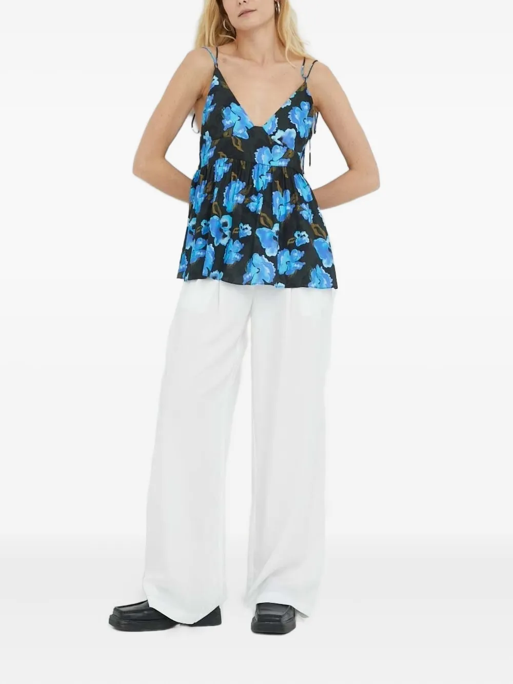 Черный цветочный принт с V-образным вырезом