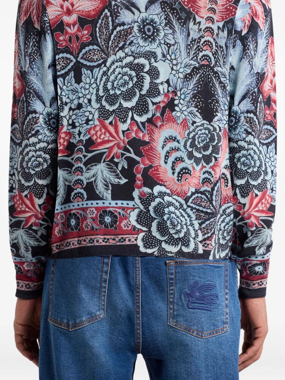 Свитер с круглым вырезом и цветочным принтом ETRO, синий
