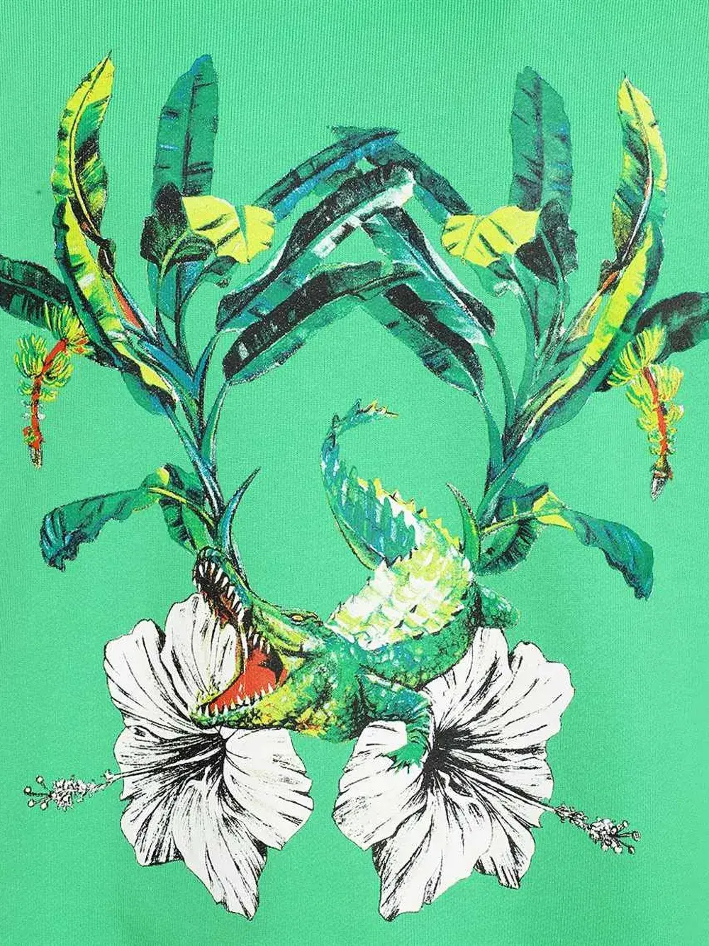 Светло-зеленый крокодиловый принт с цветочным принтом, затягивающийся шнурком капюшон, передний карман-кенгуру