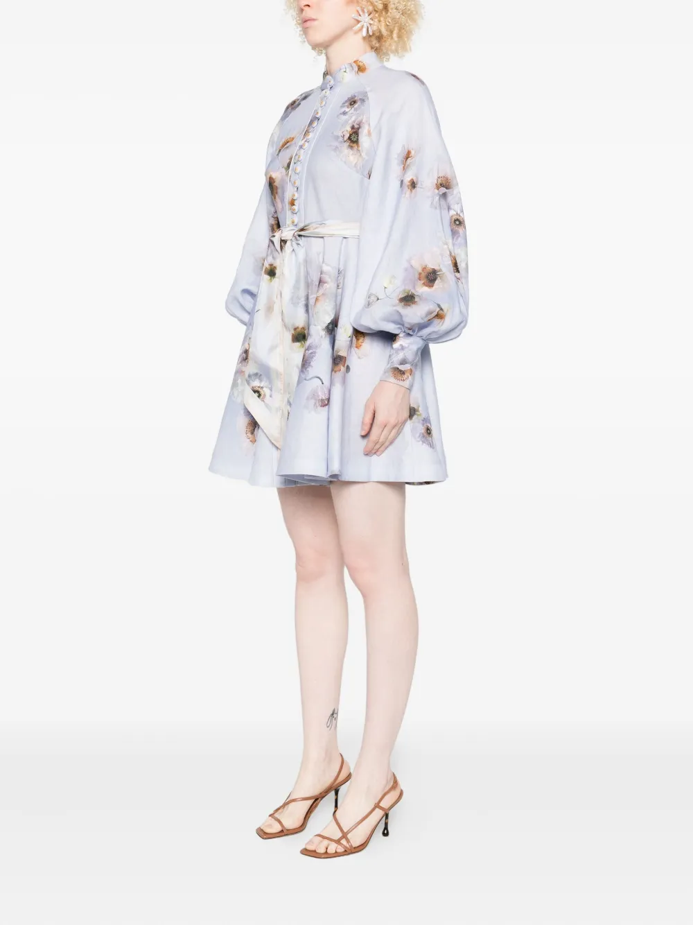 Льняное мини-платье с цветочным принтом ZIMMERMANN, фиолетовый