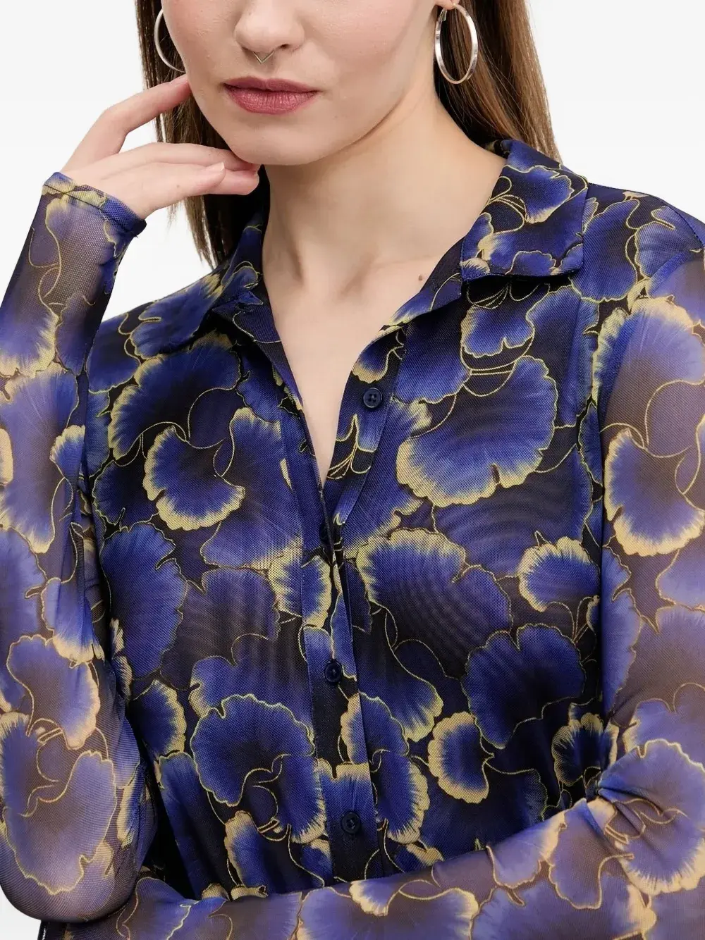 Юбка-плиссировка с цветочным принтом синего цвета, многослойная юбка из сетки, застежка на пуговицы