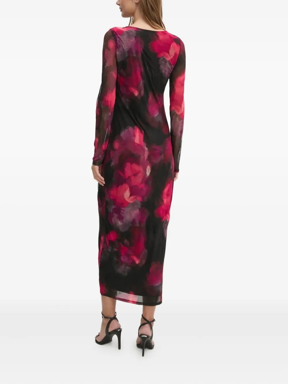 Платье миди с цветочным принтом и сборками DKNY, черный