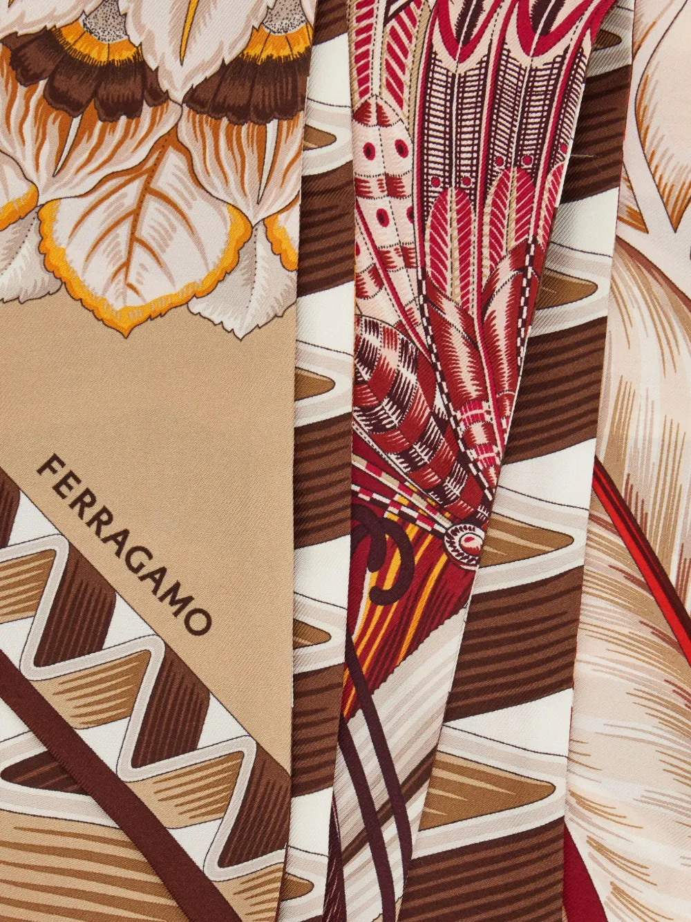 Шелковый шарф с цветочным принтом Ferragamo, нейтральный 21 674₽
