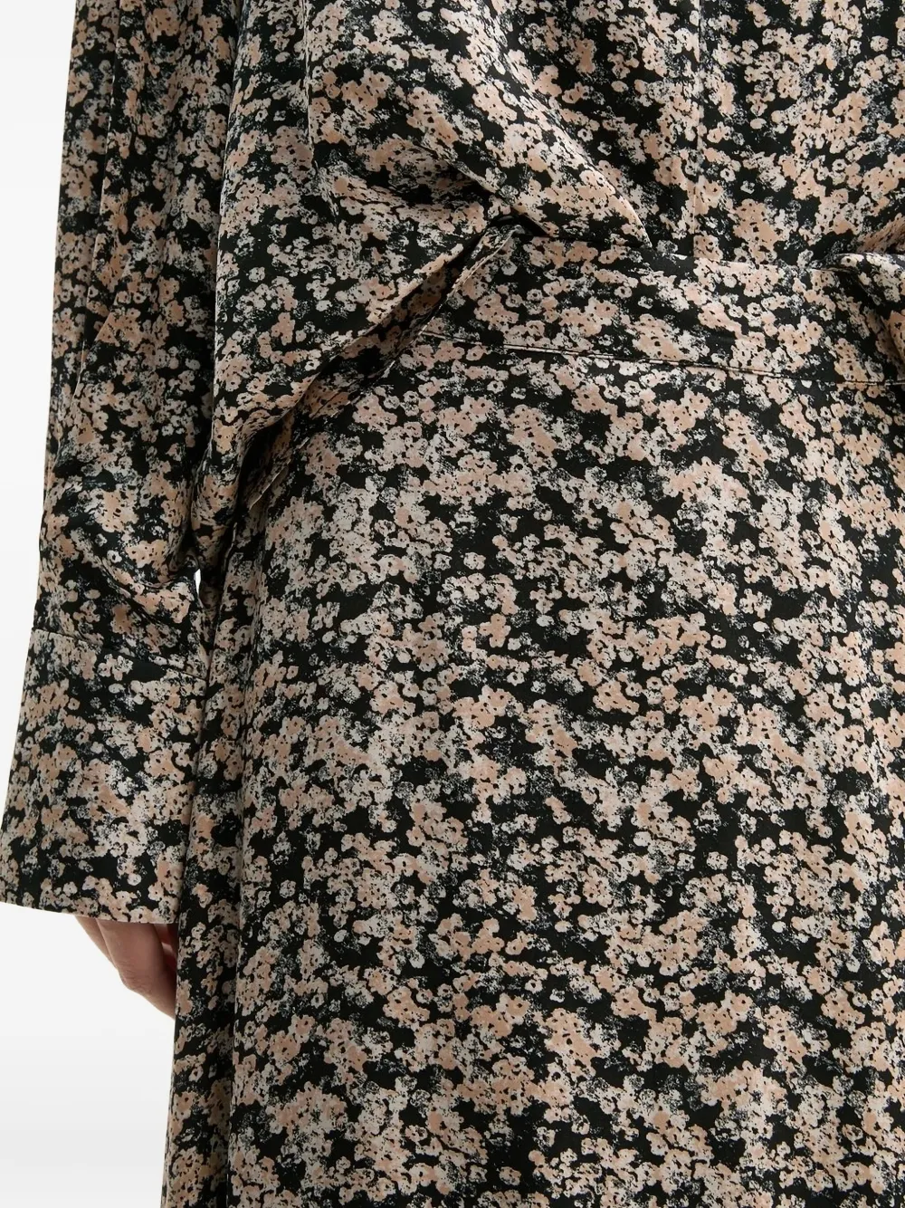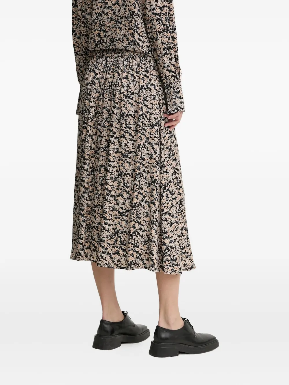Черный цветочный принт, плиссировка, длина миди, эластичный пояс