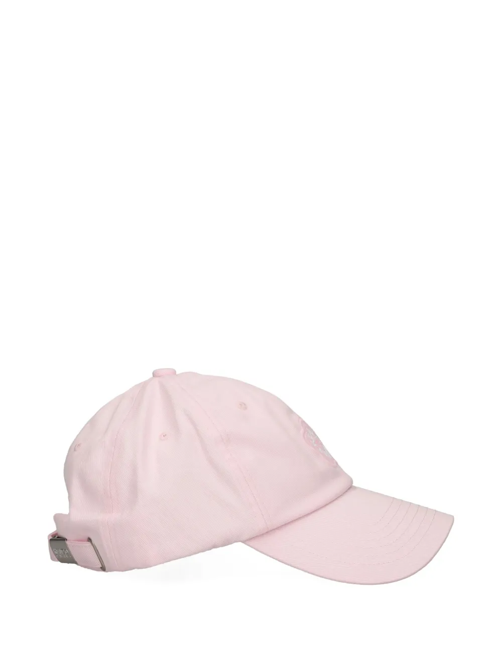 Бледно-розовый хлопковый материал, вышитый цветочный логотип, регулируемый ремешок, закругленные поля, шестипанельная тулья