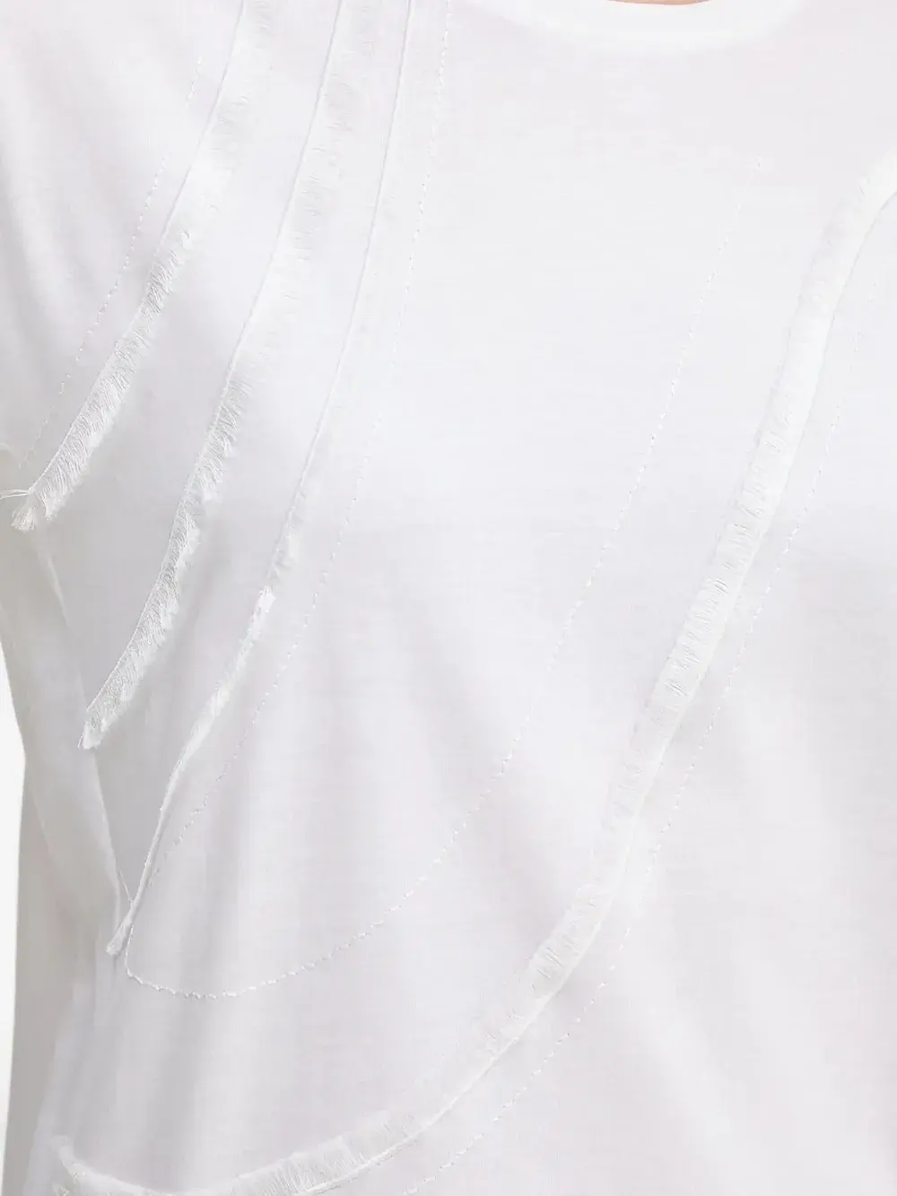 Белая бахрома, короткие рукава, круглый вырез.