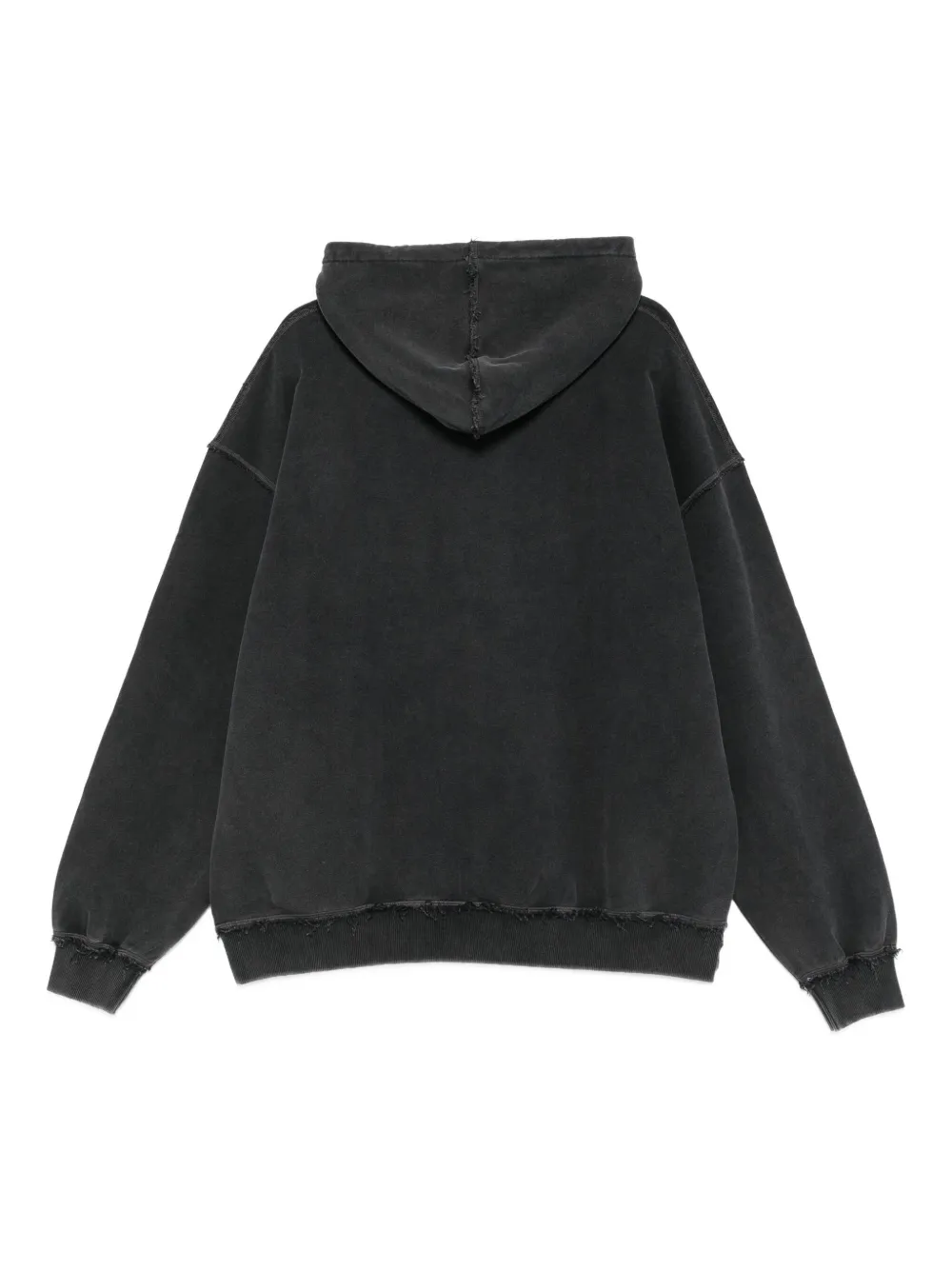 Черный хлопок, необработанные швы, классический капюшон, текстовый принт