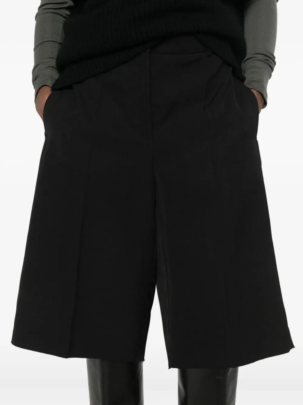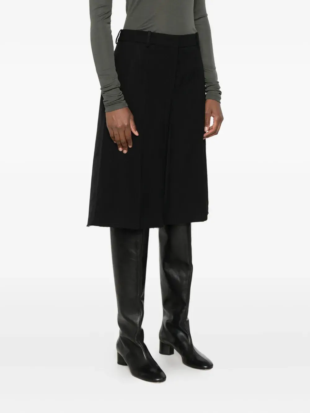 Черная необработанная кромка, складка по центру спереди, застежка на молнию