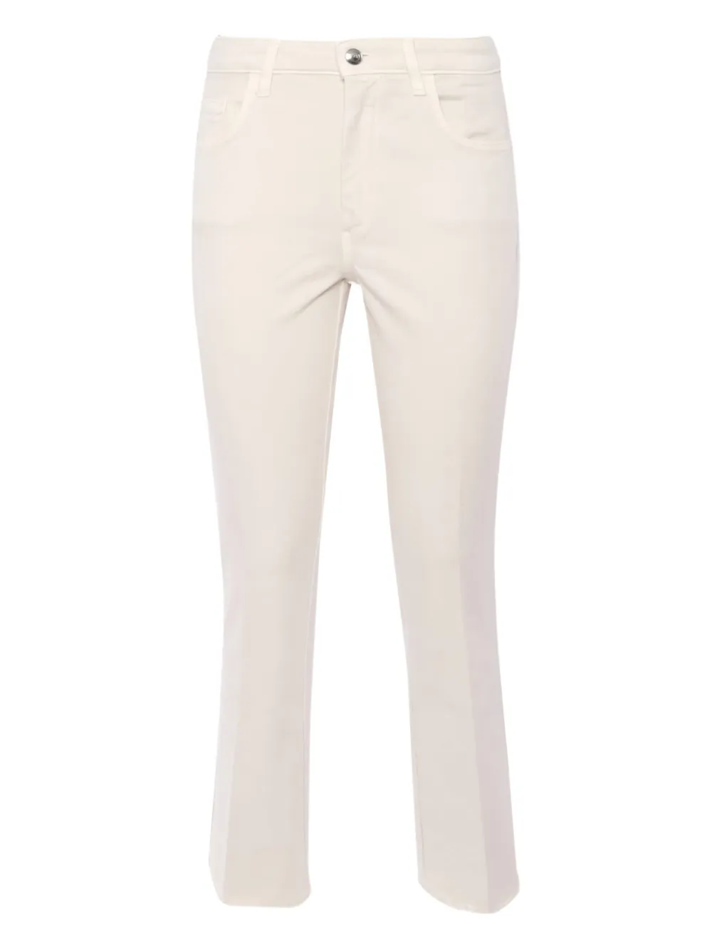 Белый необработанный край, пять карманов, застежка на пуговицы, шлевки для ремня