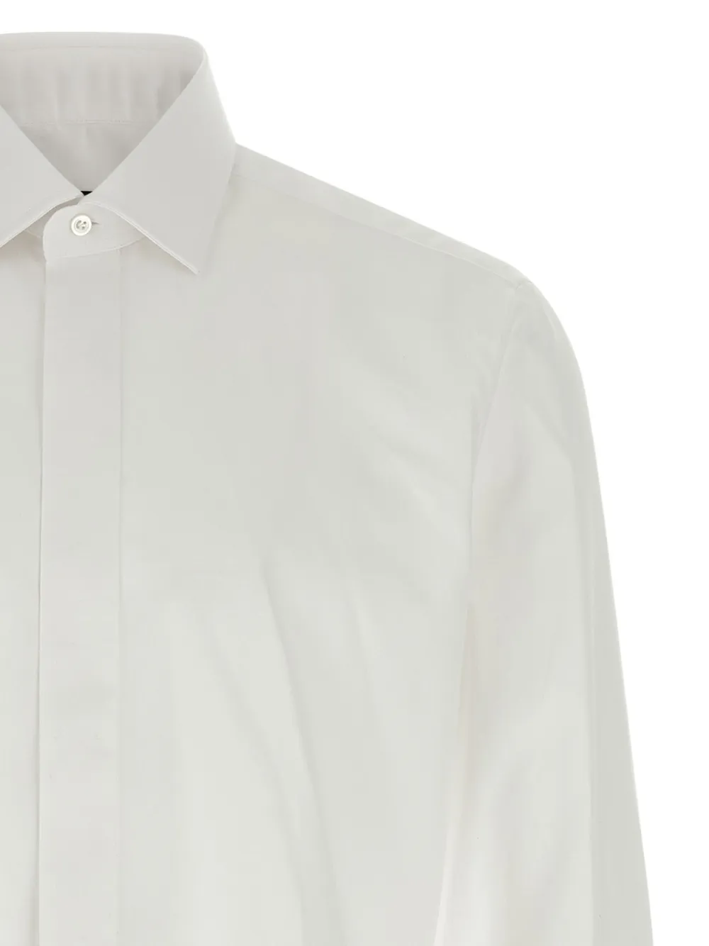 Белая потайная застежка на пуговицы, вытачка, длинные рукава, французские манжеты, хлопковый поплин