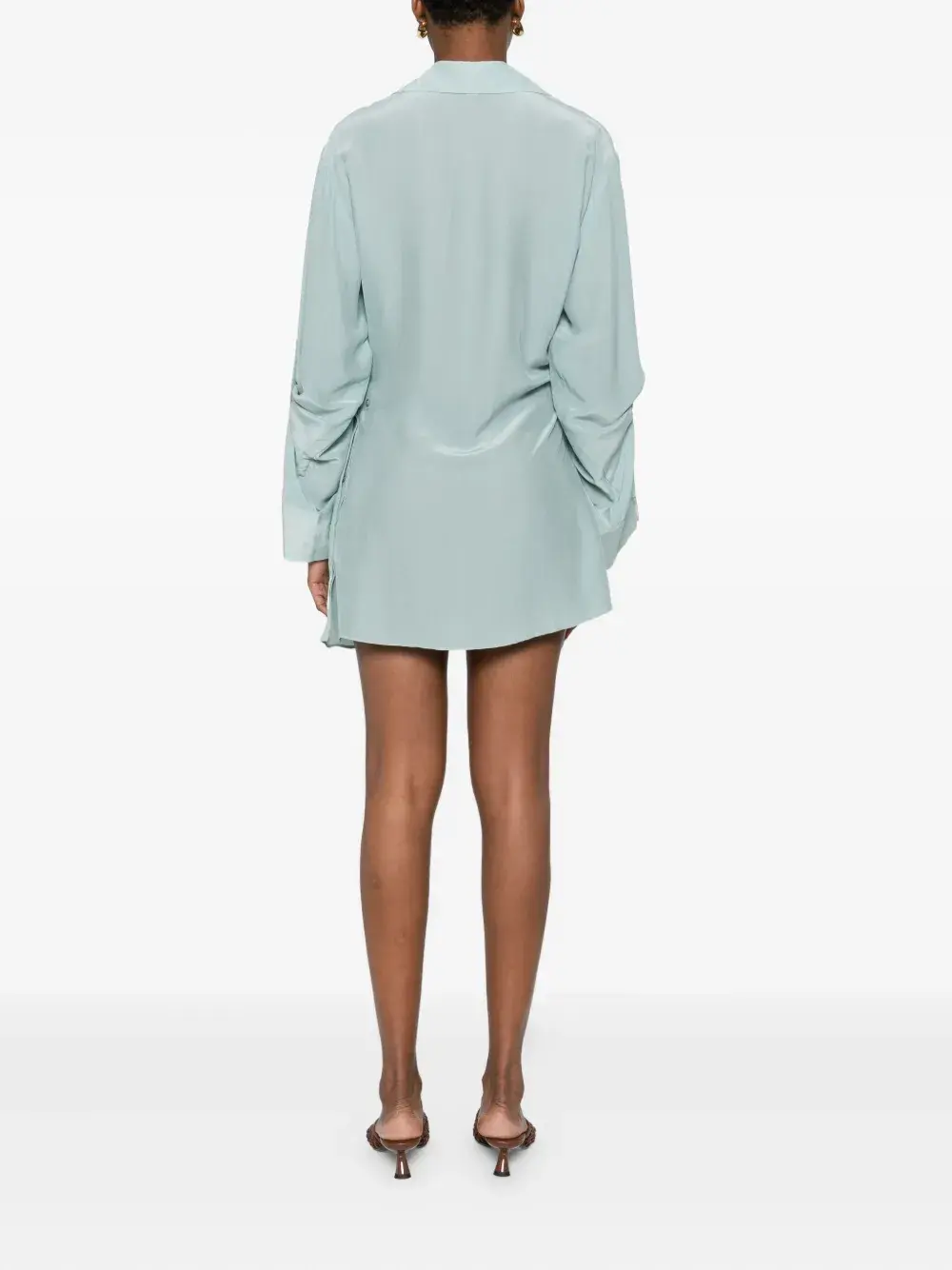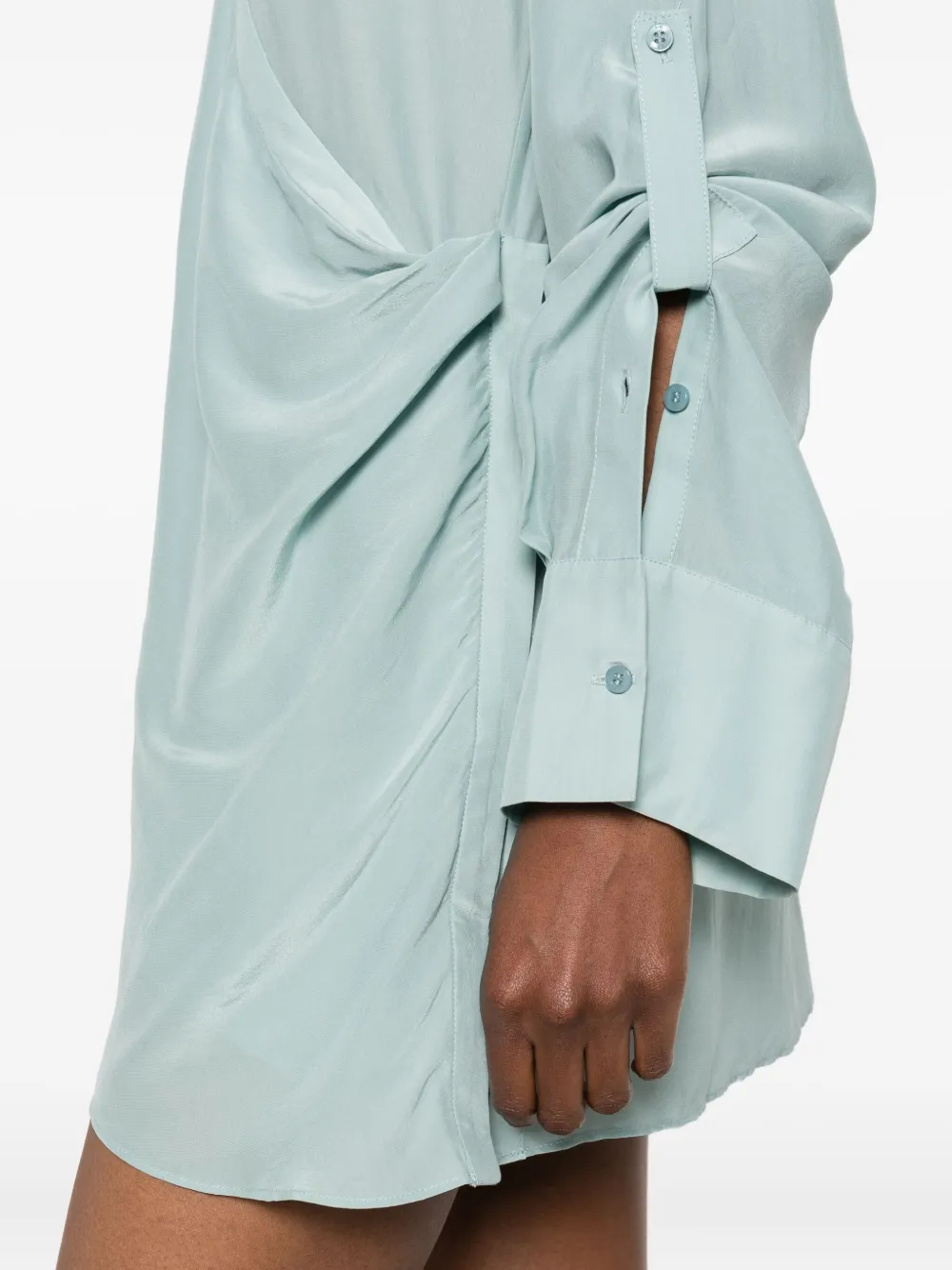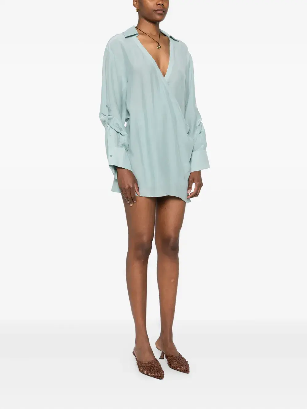 Светло-голубой дизайн с запахом, длинные драпированные рукава