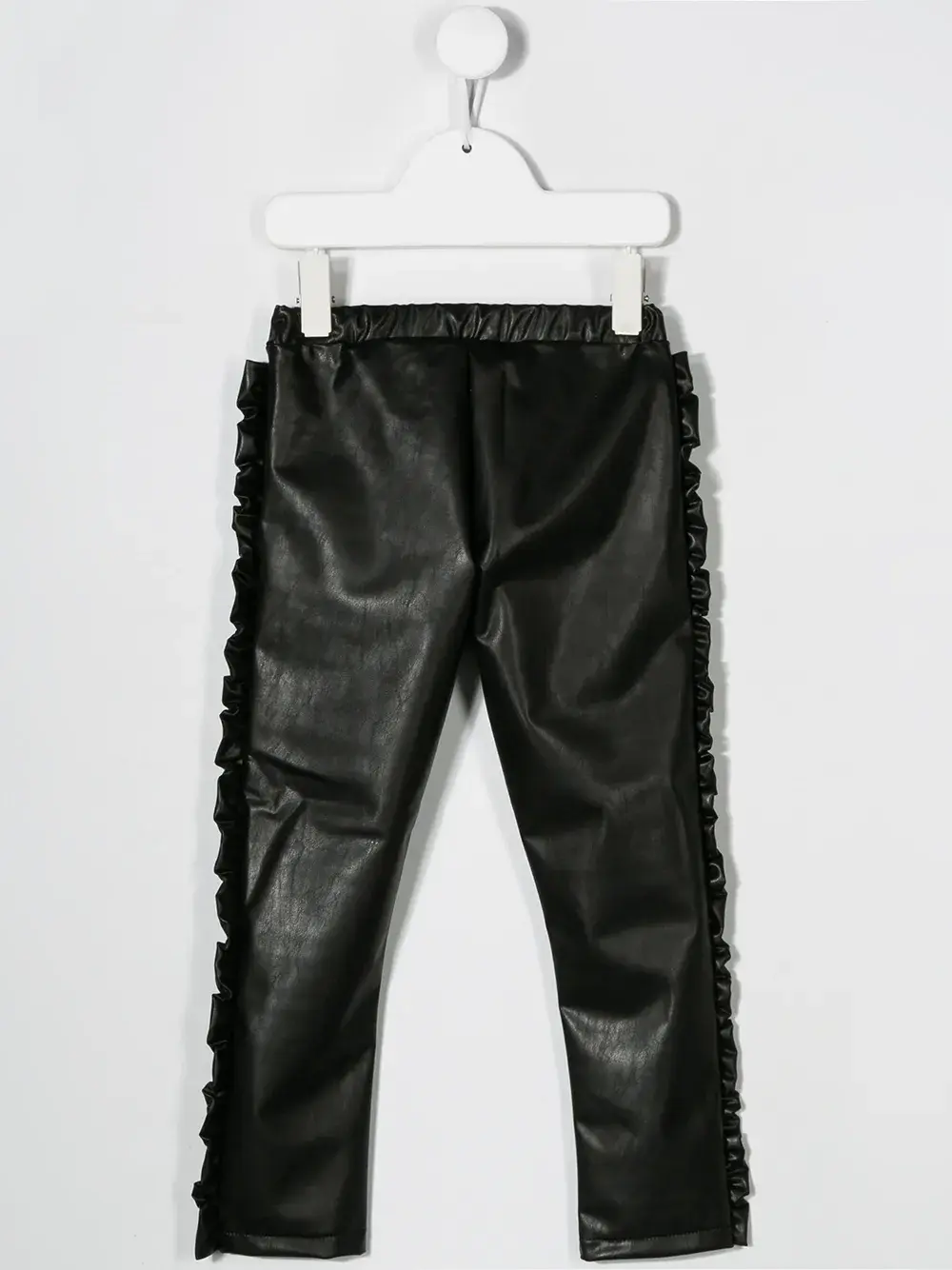 Брюки с оборками от Simonetta. Пояс с защипами, стандартная длина, серебристый металлический логотип и эластичная модель. Цвет: черный.