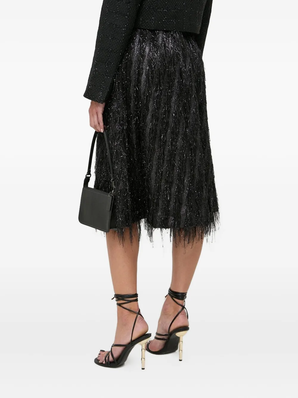Юбка миди с бахромой и эффектом металлик Custommade, черный